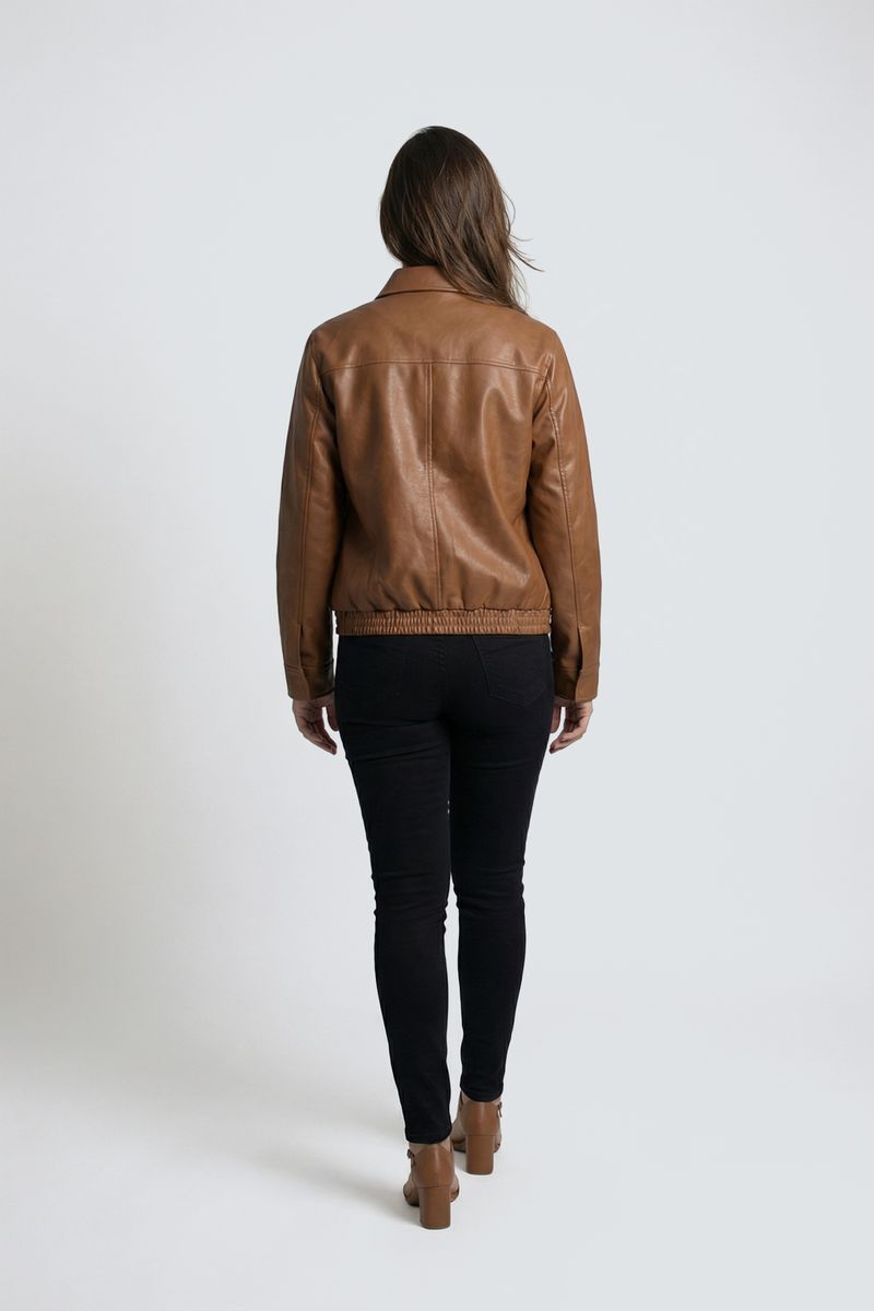 A Jaqueta Bomber Feminina Caedu em PU marrom escuro é a peça-chave para um estilo casual versátil. Seu tom terroso eleva qualquer look, garantindo modernidade e conforto. Uma escolha sofisticada para a moda feminina atual.
