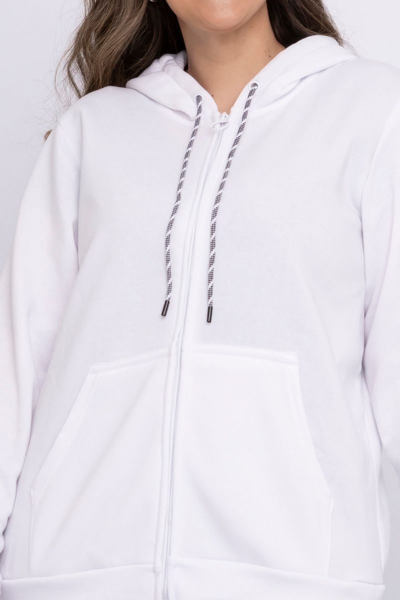 Jaqueta Feminina em Moletom com Capuz Feita Pra Mim Branca