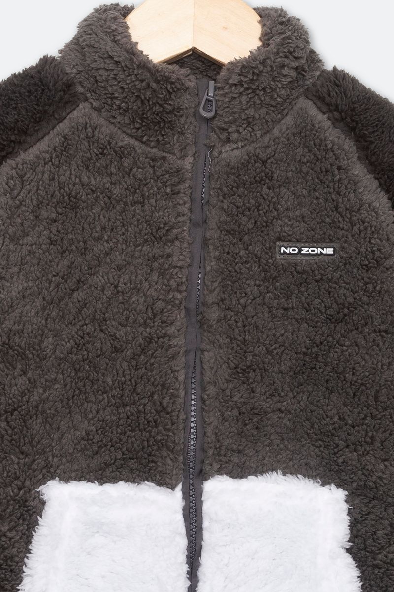 Jaqueta Infantil em Sherpa Cinza Escuro Tam 1 a 3