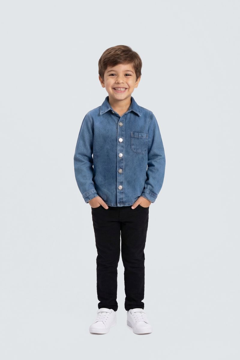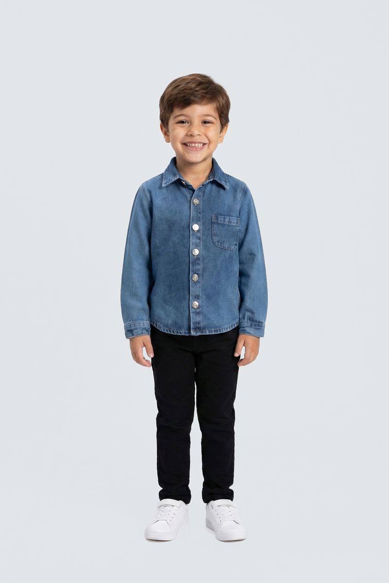 A Jaqueta Jeans Clássica Infantil Caedu Azul Médio é essencial para o guarda-roupa infantil. Em 100% algodão, oferece conforto e durabilidade. Seu design em jeans azul médio com gola e botões clássicos garante um visual atemporal e cheio de estilo para a moda infantil.