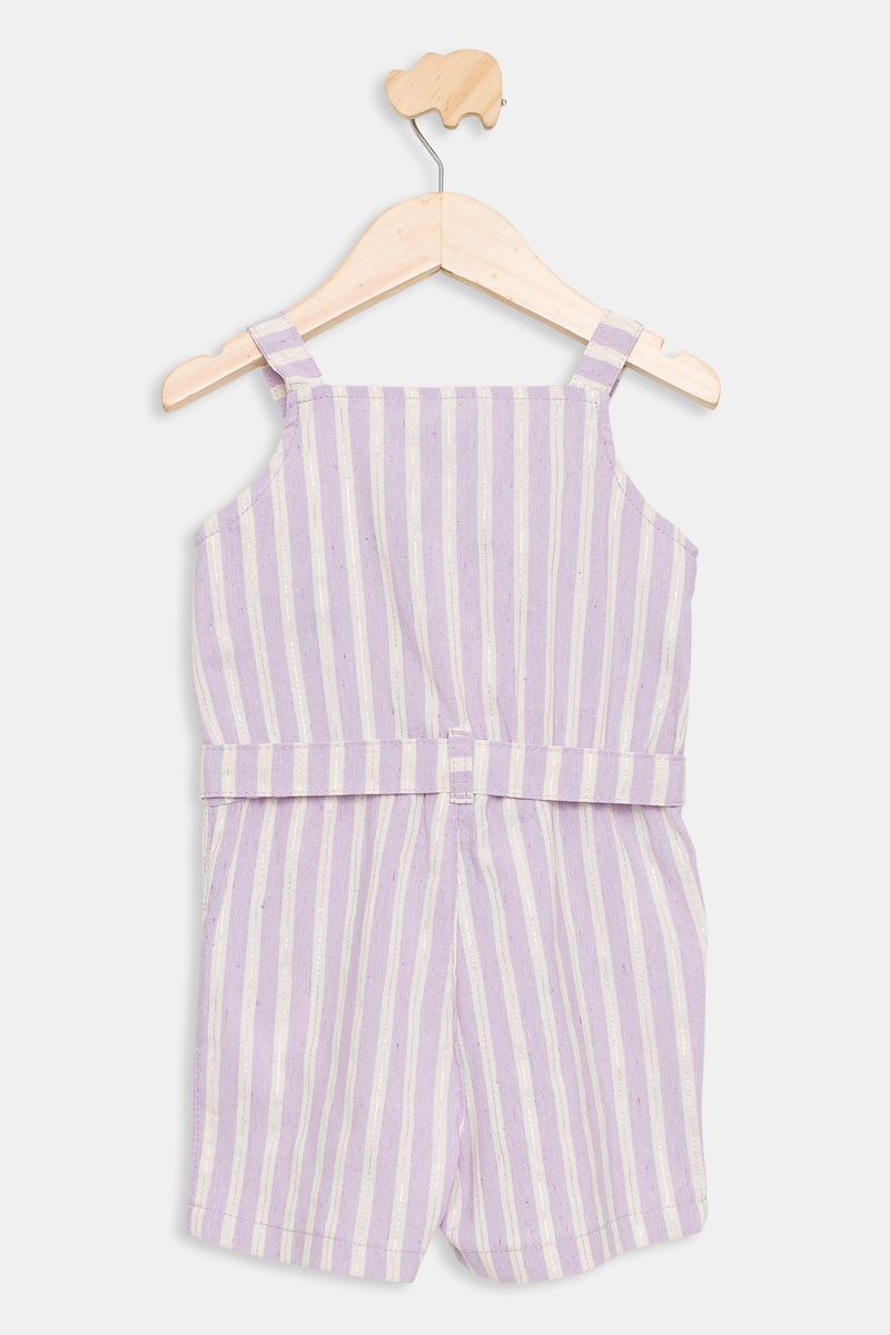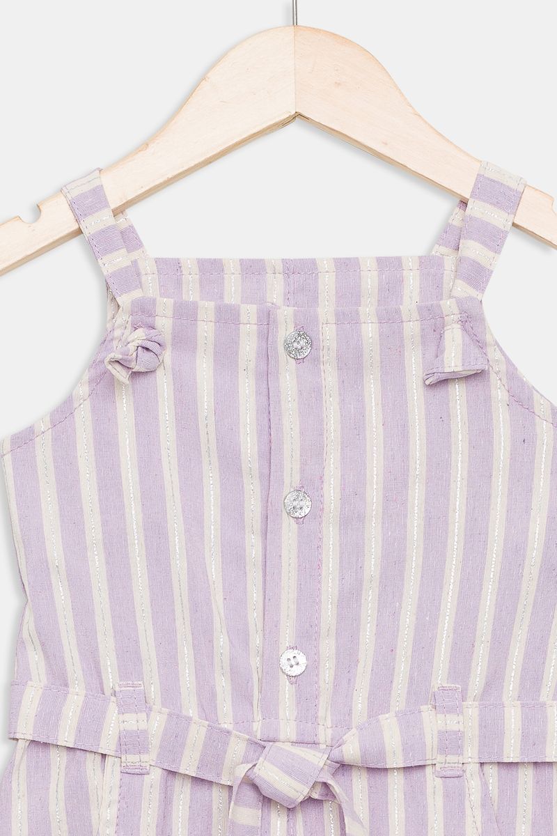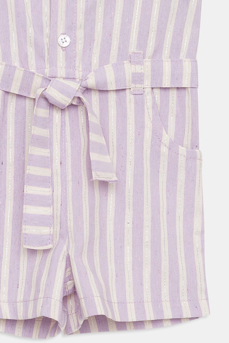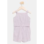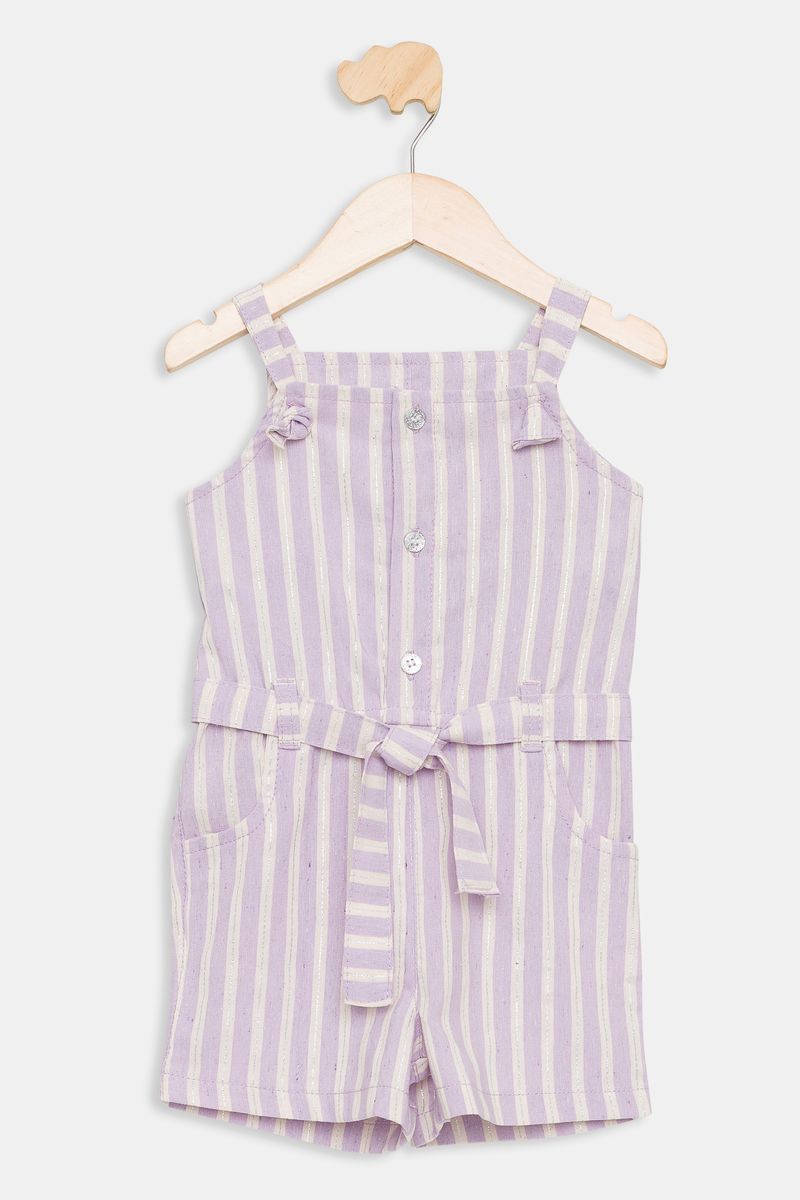Jardineira infantil em lurex com listras lilás, perfeita para as pequenas brilharem com estilo e conforto. Esta roupa da Caedu, com seu caimento solto e alças decorativas, é ideal para criar looks charmosos e cheios de moda. Uma peça versátil para diversas ocasiões.
