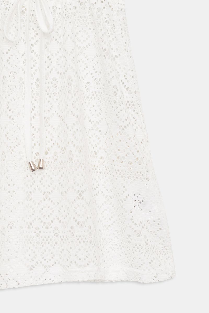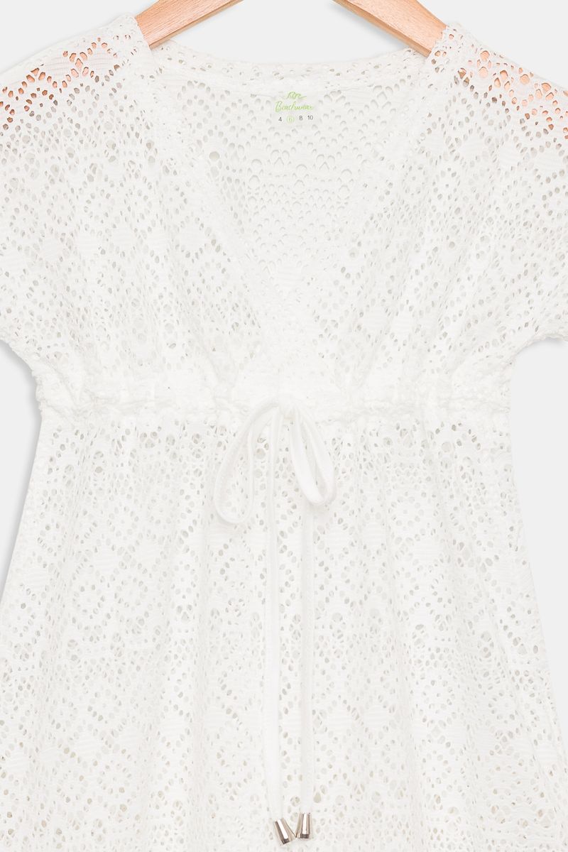 Kimono de praia infantil em renda branco, leve e estiloso, perfeito para os dias de sol.