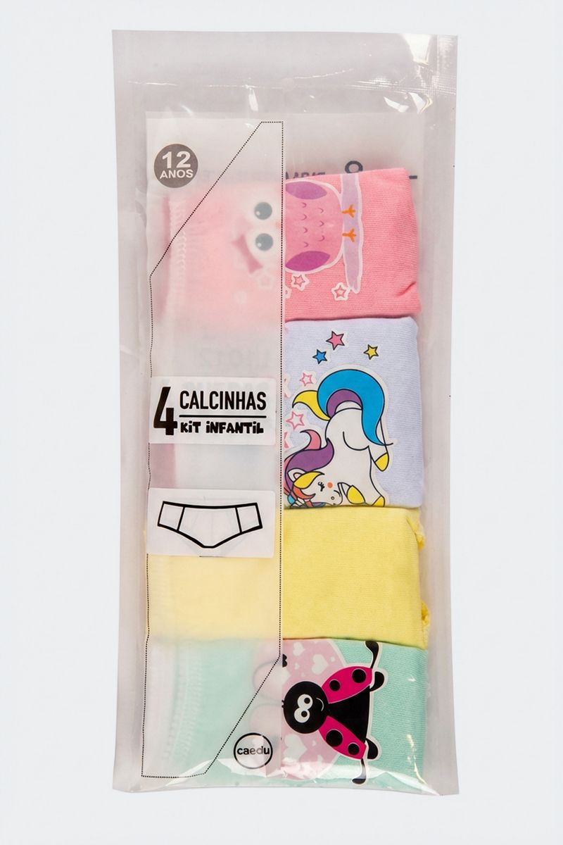 Conforto e maciez para sua pequena! O Kit 4 Calcinhas Infantis 100% Algodão Sortidas Caedu oferece respirabilidade. Em algodão puro, com estampas sortidas do tema Unicórnio, são ideais para o dia a dia e as roupas infantis.
