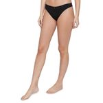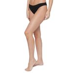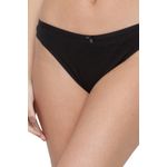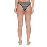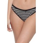 Kit de calcinhas femininas, com 2 no kit. As peças apresentam listras nas cores pretas e cinza, modelo biquini e com lacinha na parte frontal.