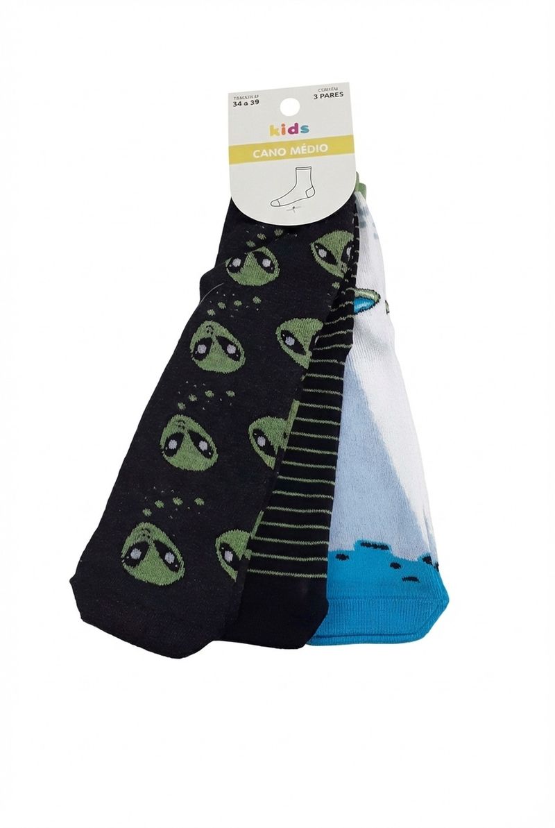 Conforto e estilo para os pequenos com o Kit 3 Pares Meias Infantis Cano Médio Caedu. Em cotton, estas meias infantis estampadas com E.T., listras e padrões divertidos são ideais para o dia a dia, trazendo alegria e maciez.