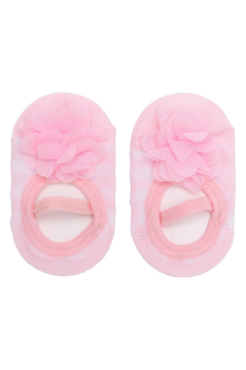 Kit Meia Infantil Bebê Sapatilha e Faixa Para Cabelo com Aplique Rosa Tam 14 ao 18