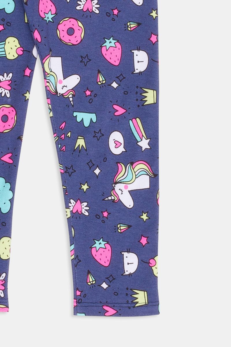 Legging infantil unicórnio azul escuro, com estampa encantadora.