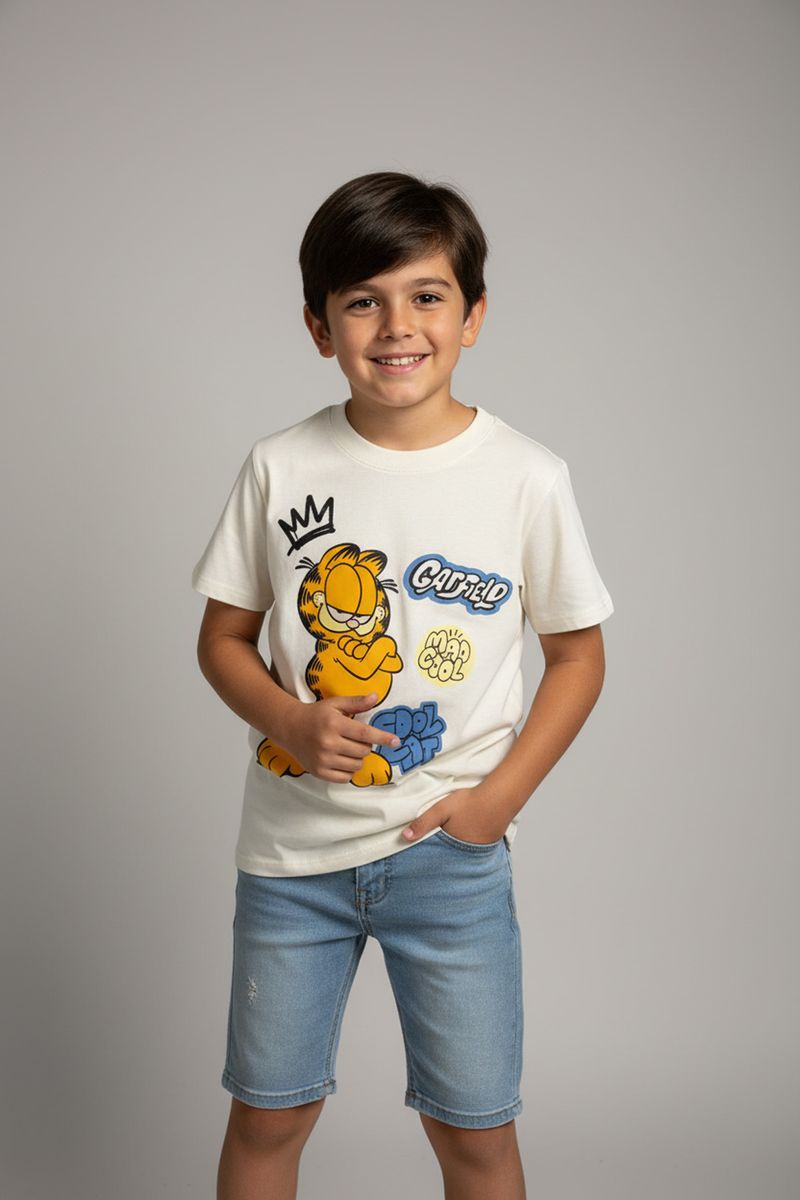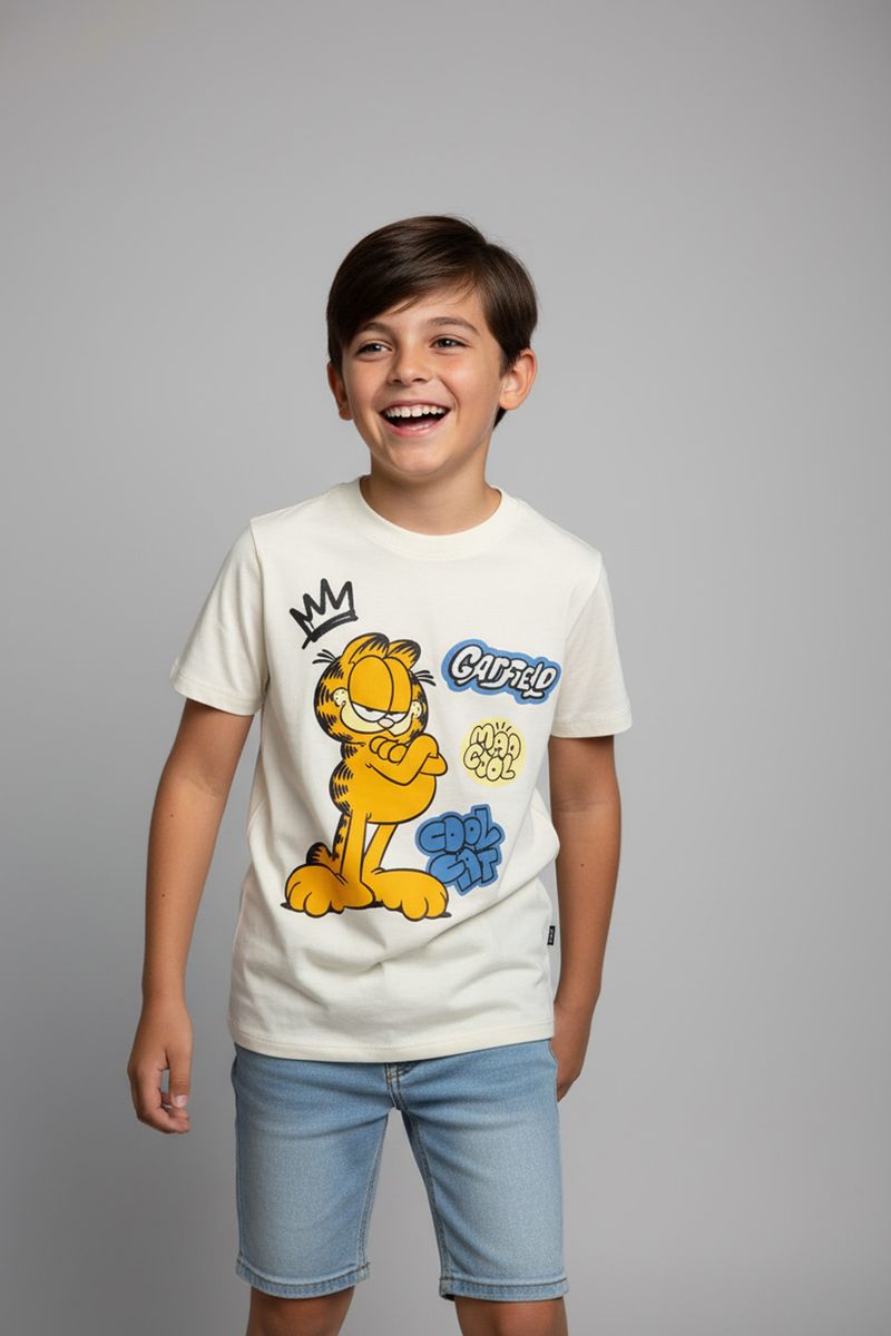 A camiseta infantil Caedu Garfield Off-White oferece conforto e estilo para o dia a dia. Feita em 100% algodão, sua estampa divertida do Garfield "Mad Cool" garante um visual único e alegre. Perfeita para as roupas infantis que combinam qualidade e diversão.