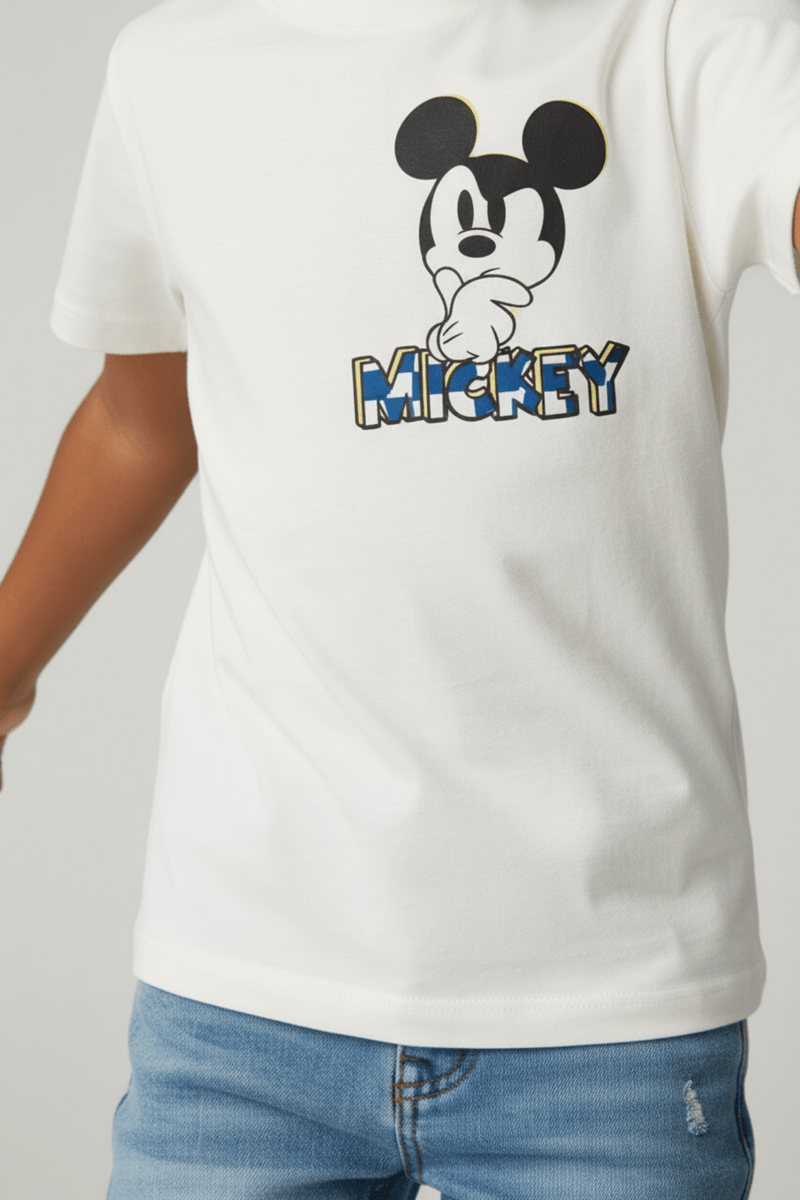 O Top Mickey Mouse Off White Caedu é a escolha perfeita para o dia a dia. Feito em 100% algodão e meia malha, oferece máximo conforto e durabilidade. Com estampa vibrante do Mickey e gola redonda, garante um visual divertido e cheio de estilo para as crianças. Ideal para quem busca roupas Caedu de qualidade.