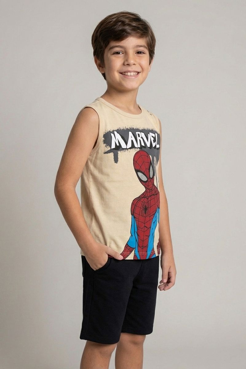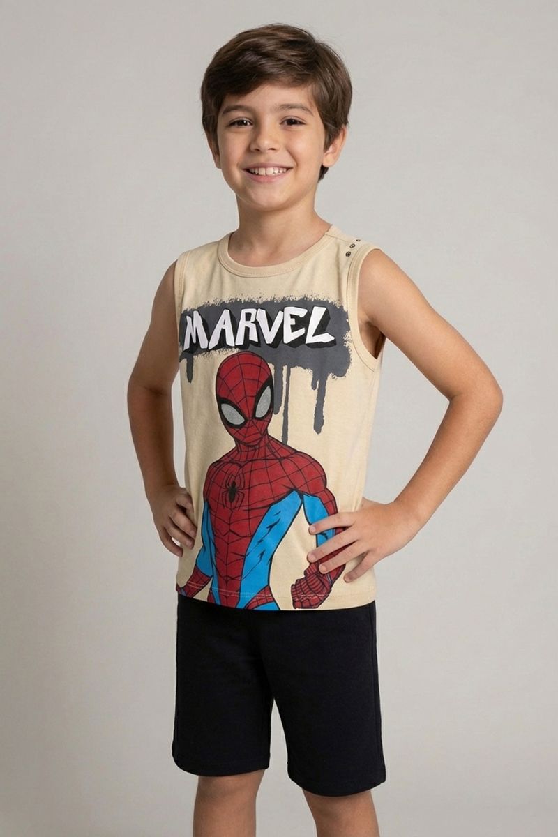 A Regata Infantil Licenciada Marvel Homem-Aranha da Caedu é a roupa infantil perfeita para os pequenos fãs. Confeccionada em 100% algodão de meia malha, oferece conforto e durabilidade. Com estampa vibrante do Homem-Aranha, esta roupa infantil traz a magia da Marvel para o dia a dia, garantindo um visual cheio de aventura e estilo.