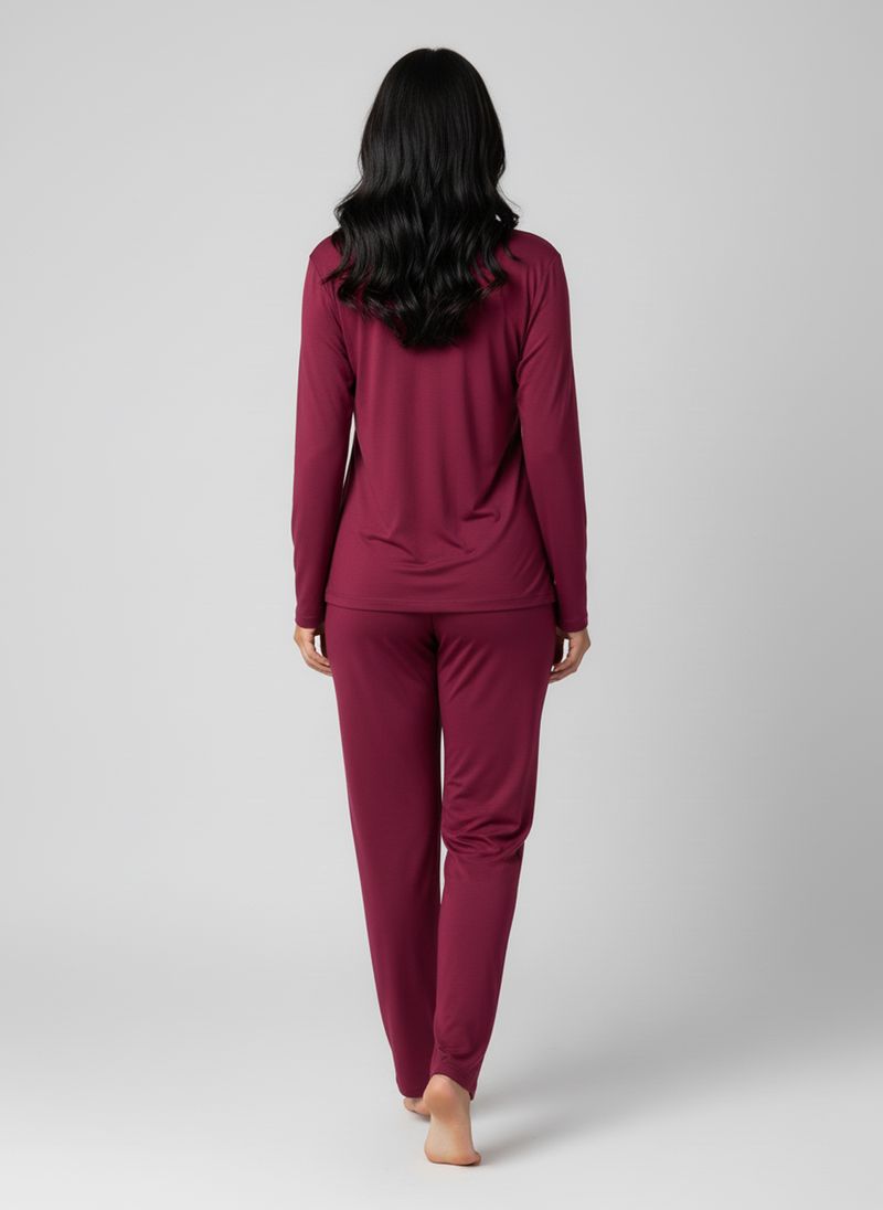 Combine seu Pijama Longo Conforto Marsala com um robe macio para noites mais frescas, chinelos aconchegantes para o máximo relaxamento e uma manta quentinha para suas sessões de filmes. Crie um ambiente de puro bem-estar e estilo em casa com esta roupa da Caedu.