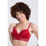 Sinta-se poderosa com o Sutiã de Renda Vermelha Vibrante Caedu. Com bojos estruturados e renda floral detalhada, ele oferece conforto e um ajuste perfeito. A faixa listrada e o laço delicado adicionam um toque de sensualidade e estilo à sua moda íntima.