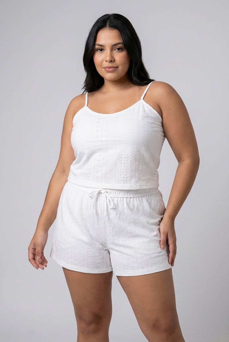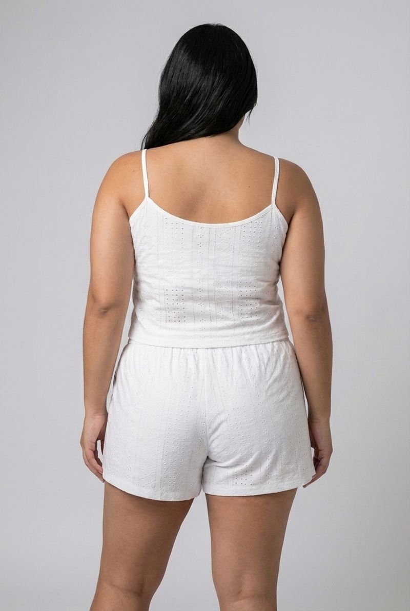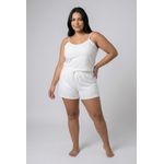 Modelagem: Blusa com alças finas, shorts com cós elástico