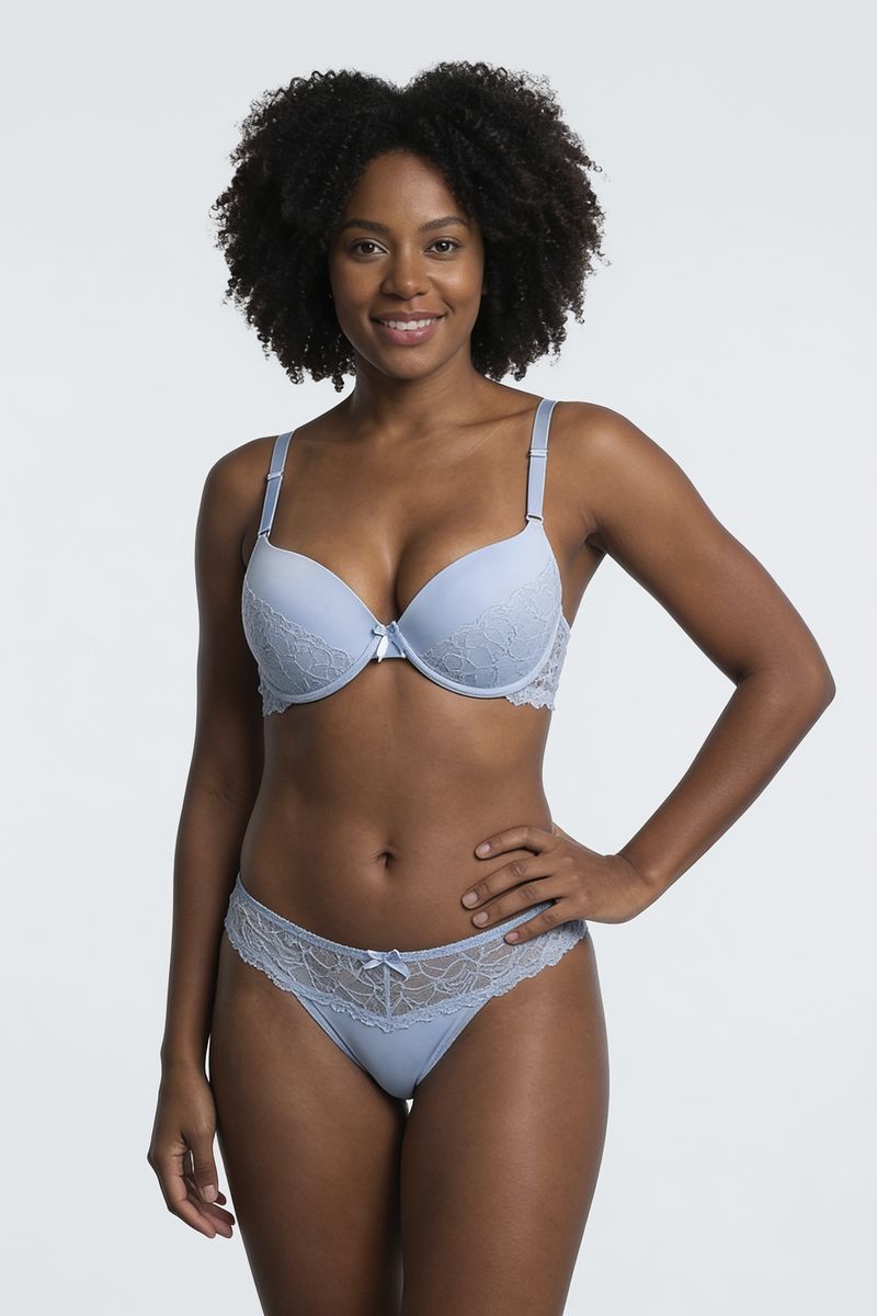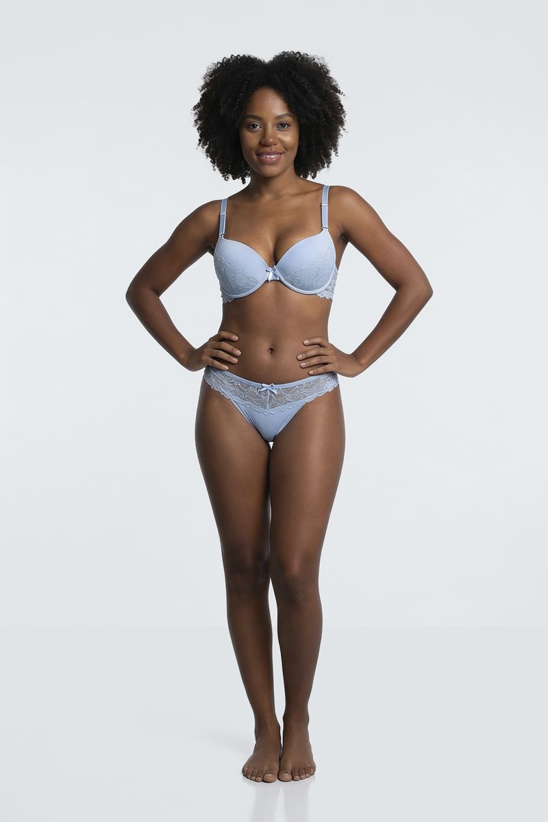 Sinta a delicadeza e o conforto do Sutiã Push-Up Caedu. Confeccionado em microfibra e renda azul claro, ele realça sua silhueta com bojo e alças ajustáveis, garantindo um ajuste perfeito e um toque de sofisticação para sua moda íntima.