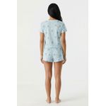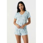 Detalhes: Blusa de manga curta com decote em V e shorts curtos com cintura elástica