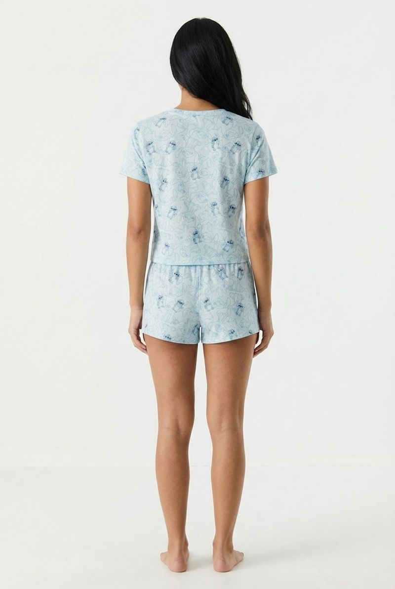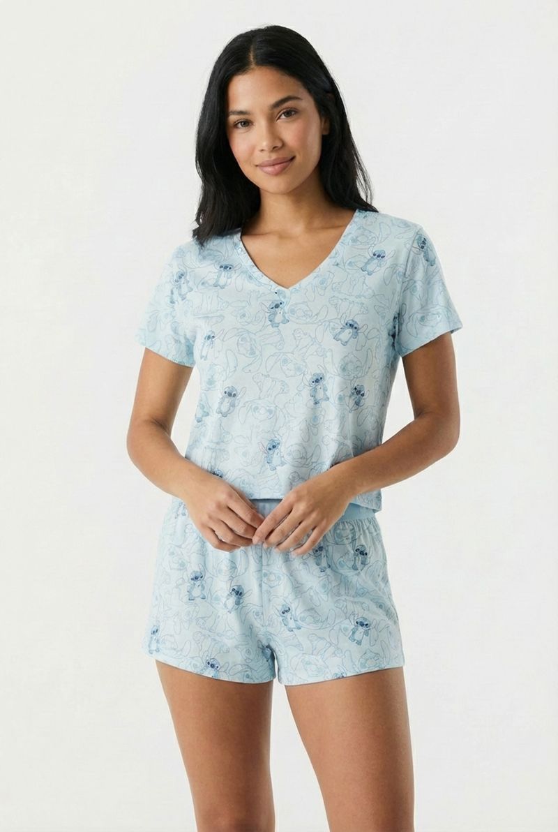 Desfrute de noites tranquilas e dias relaxantes com o Pijama Feminino Short Doll Stitch Disney Azul Estampado Caedu. Este conjunto de duas peças em polybrush, com 95% poliéster e 5% elastano, oferece toque suave e caimento perfeito. A estampa exclusiva do Stitch em azul claro traz diversão e charme para sua moda íntima.