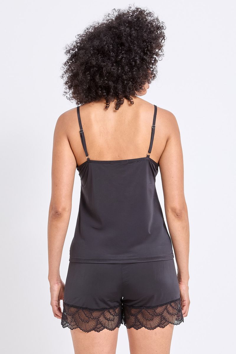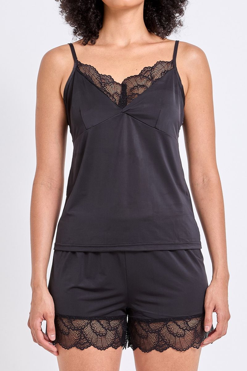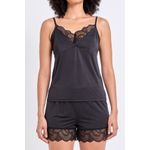 Sinta a delicadeza da Camisola Liganet Preta com Renda Delicada Caedu. Confeccionada em liganet e poliéster, oferece conforto inigualável. Seu decote em V com renda intrincada e alças finas realça a beleza feminina, ideal para noites de puro bem-estar.