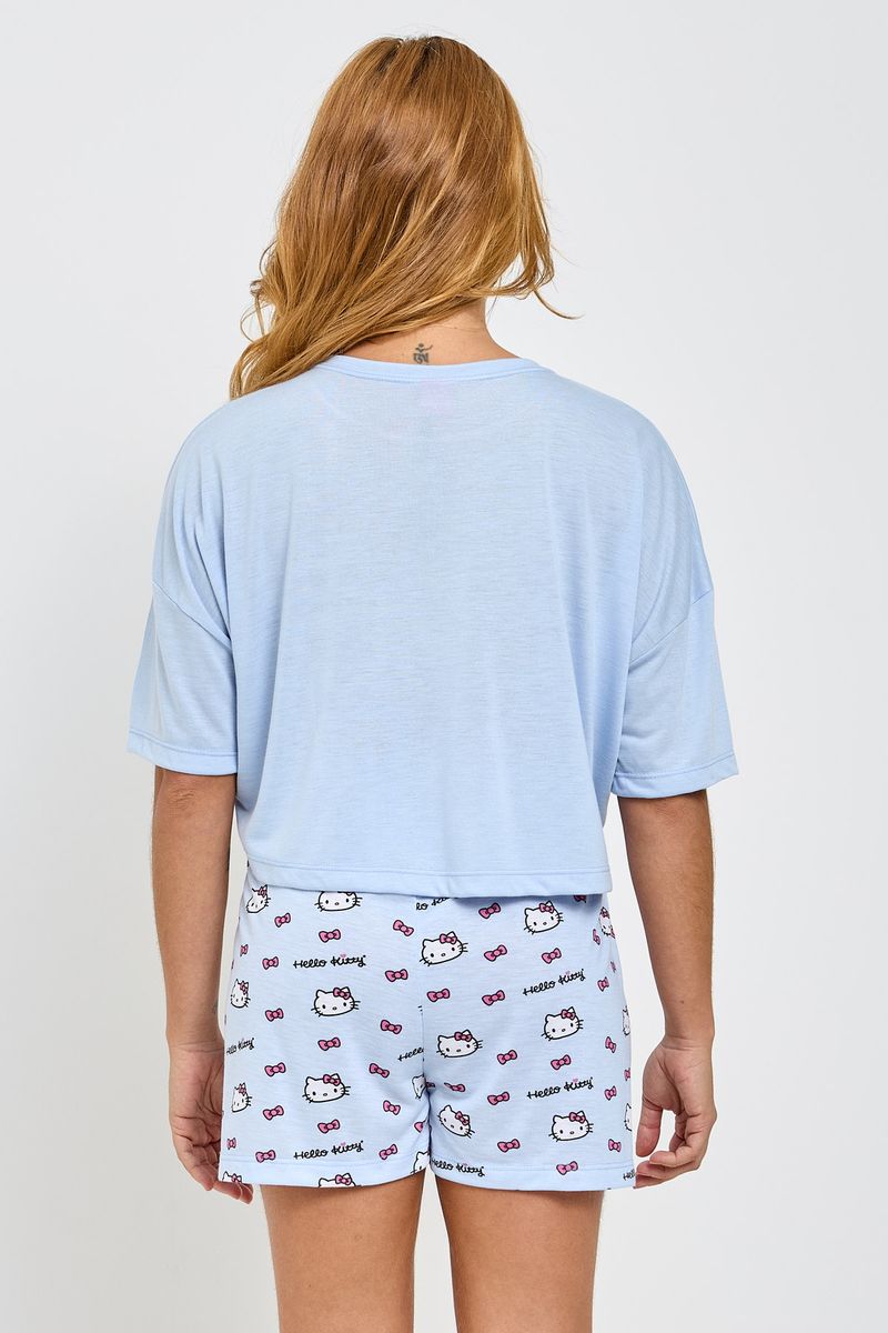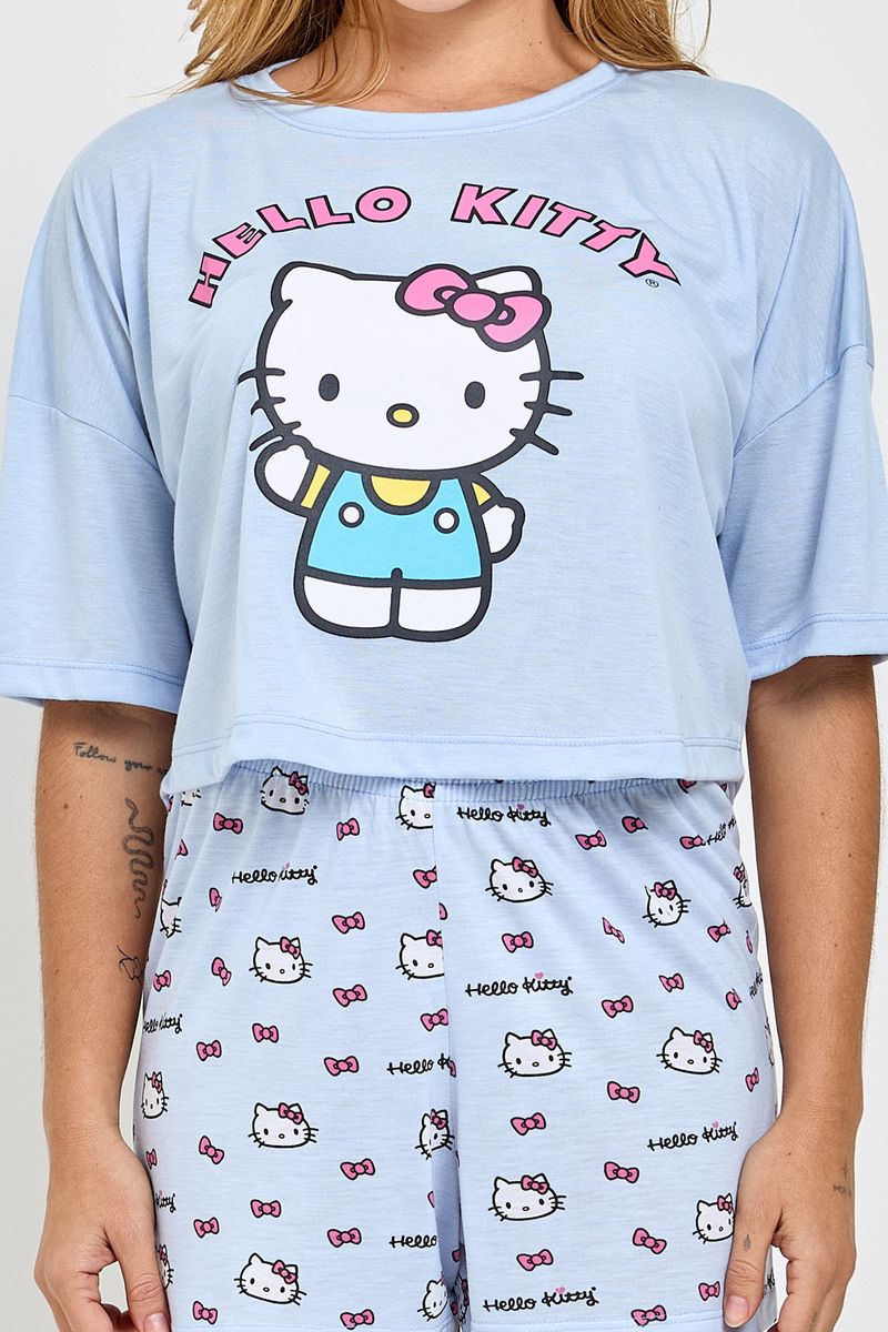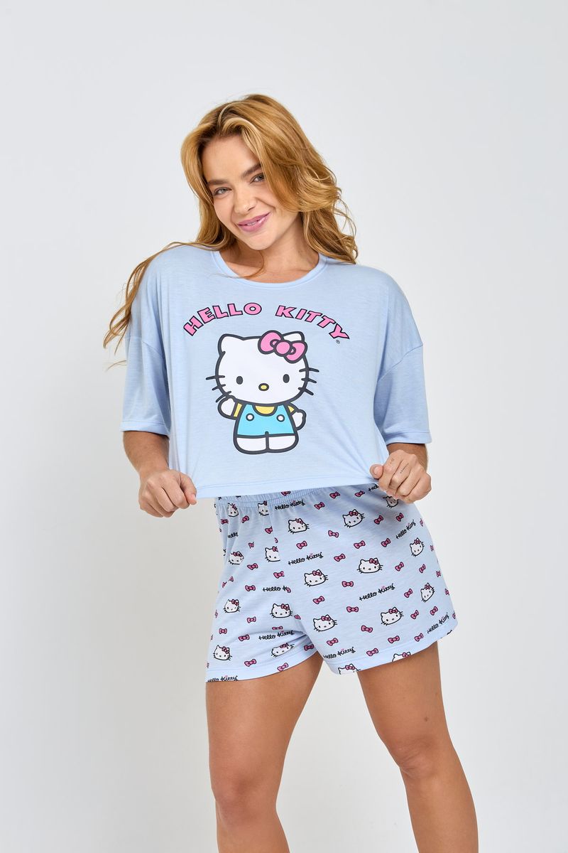 Desfrute de noites mágicas com o Pijama Hello Kitty Azul Claro Caedu. Confeccionado em meia malha, ele oferece o máximo de conforto e leveza. Perfeito para quem busca roupa de dormir com estilo e a alegria da Hello Kitty, garantindo um sono tranquilo e cheio de charme. Uma peça essencial da moda íntima Caedu.