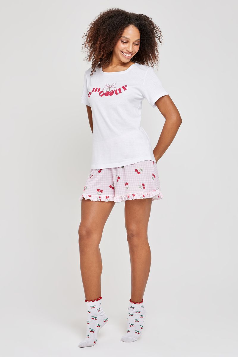 VestuárioModa ÍntimaFemininaCamisolas e PijamasLing noite ldj020 pijama cherry amour branco