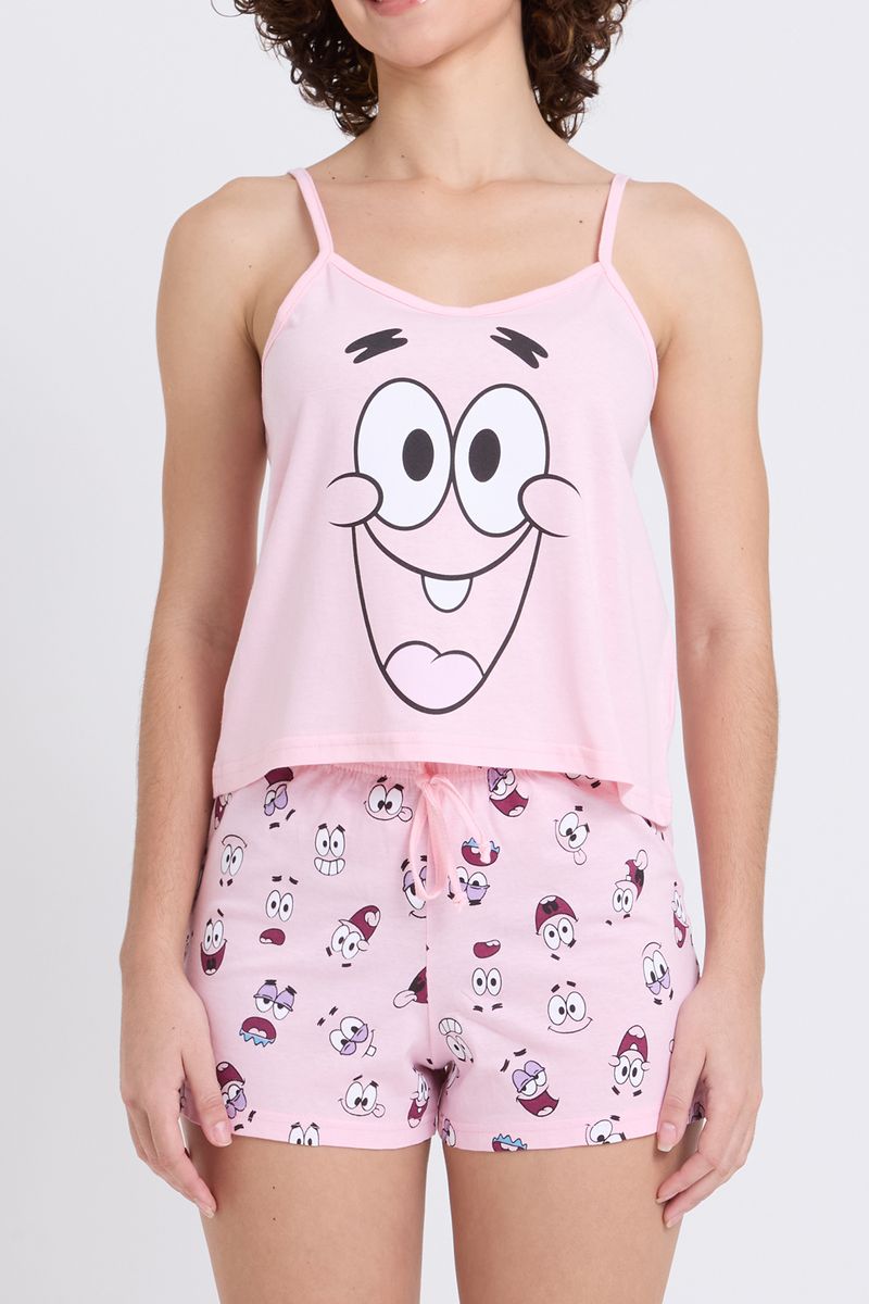 Ideal para momentos de relaxamento em casa, o Pijama Curto Feminino Patrick Estrela é perfeito para suas noites de sono, manhãs preguiçosas ou para desfrutar de um filme no sofá. Conforto e estilo para seu dia a dia.