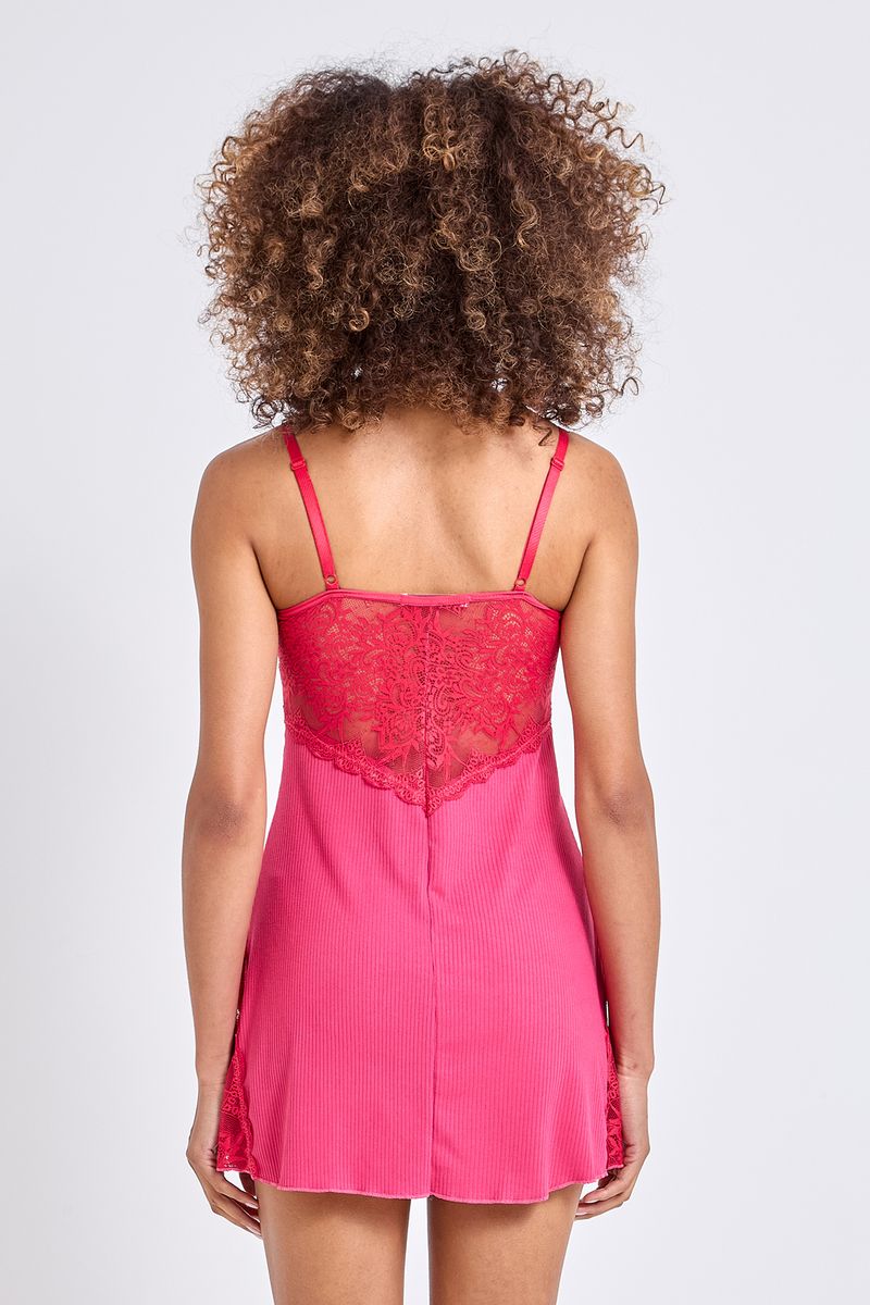 Desperte sua beleza com a Camisola Feminina Fúcsia Caedu. Com design elegante, esta peça de moda íntima combina a delicadeza da renda floral com o conforto do tecido canelado. Sinta-se confiante e sofisticada em uma roupa que realça sua feminilidade.
