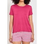 Sinta o abraço do conforto com o Pijama Feminino Conforto Pink e Shorts Estampa Pied de Poule Caedu. Confeccionado em POLYBRUSH com 95% poliéster e 5% elastano, este conjunto estampado oferece toque macio e liberdade de movimento. Perfeito para seus momentos de descanso, combinando estilo e bem-estar.