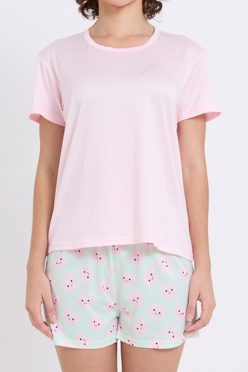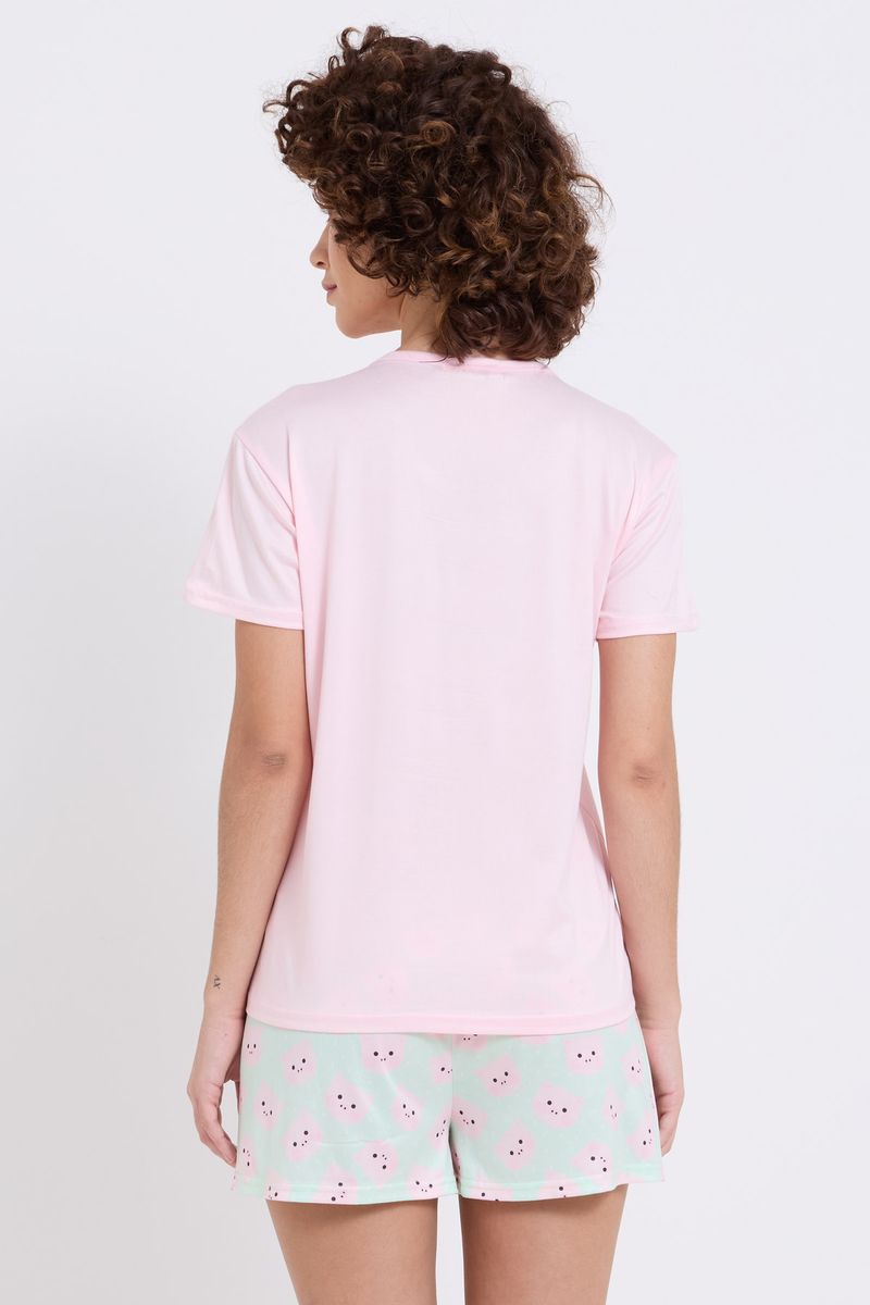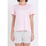 Pijama Feminino Curto Conforto Total Caedu: Blusa Rosa e Shorts Estampado
