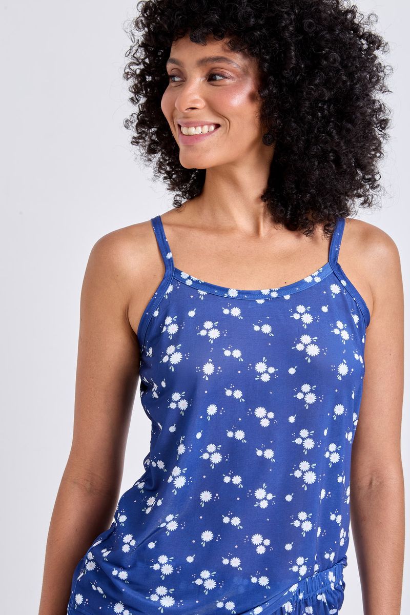 Detalhes: Alça fina, decote arredondado, acabamento em viés