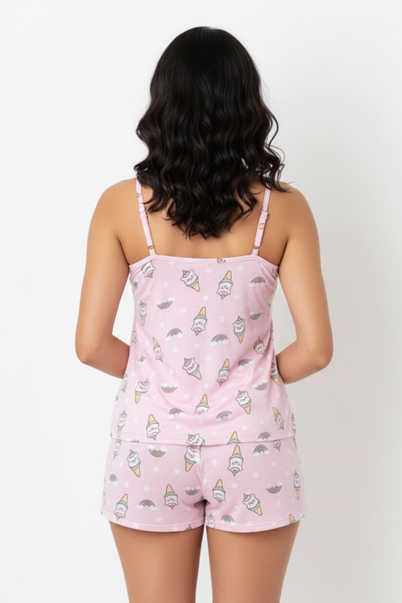Desfrute de noites tranquilas com o Pijama Feminino Curto Caedu. Confeccionado em liganete leve e respirável, este conjunto rosa com estampa de sorvetes e arco-íris oferece máximo conforto e um toque divertido. Ideal para quem busca roupas de dormir que unem leveza e estilo, garantindo bem-estar em cada momento de descanso. Perfeito para noites quentes e momentos relaxantes.