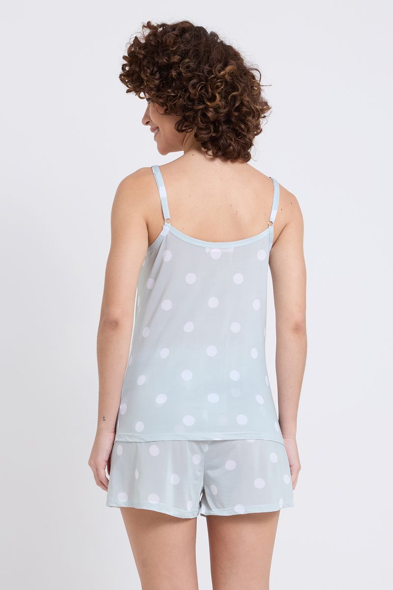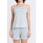 Detalhes: Blusa com alças finas e decote arredondado, short com cós elástico