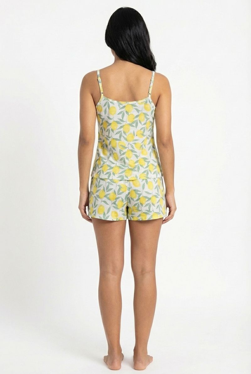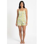 O Conjunto Pijama Feminino Curto Ligan Limão Tropical Caedu oferece conforto e frescor. Com blusa de alça e short, sua estampa de limões e folhas verdes é ideal para sua roupa de dormir.