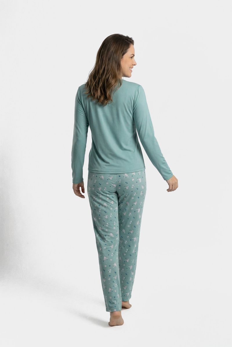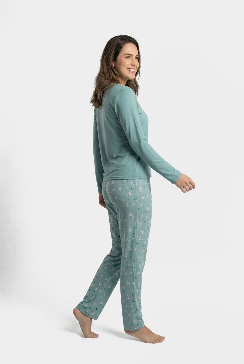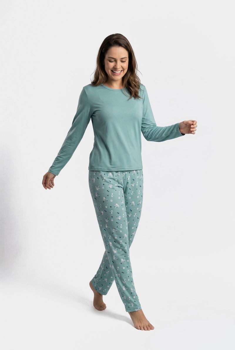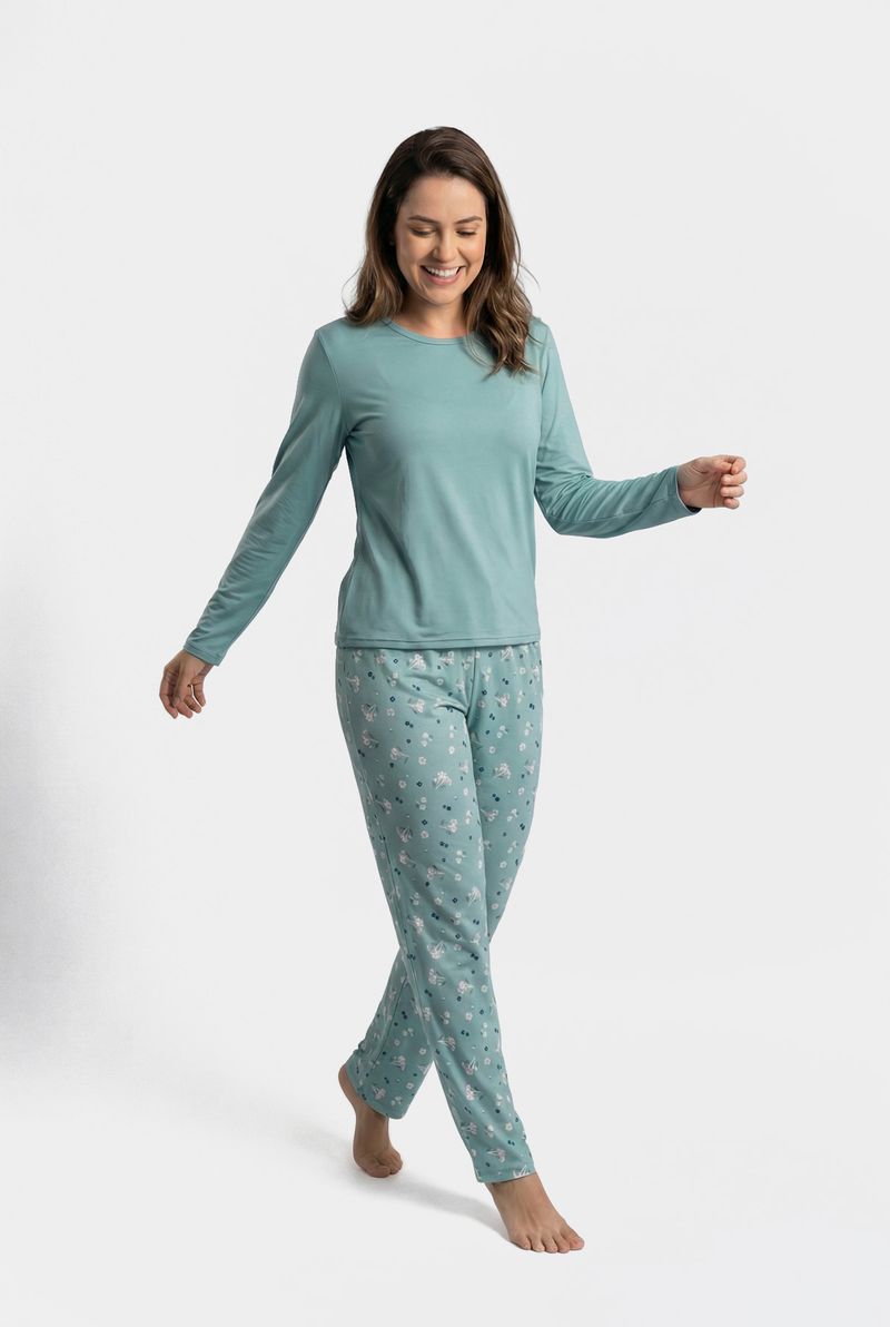 VestuárioModa ÍntimaFemininaCamisolas e PijamasLing pro lbj139 pijama ml poly flor verd estampado