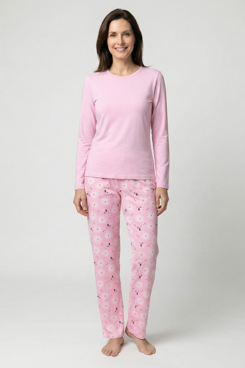 Desfrute de noites de sono tranquilas e manhãs relaxantes com o Pijama Feminino Longo Caedu. Confeccionado em polybrush, este conjunto rosa claro oferece toque suave e caimento perfeito. A blusa lisa e a calça estampada com margaridas vibrantes combinam conforto e um visual charmoso para seus momentos de descanso.