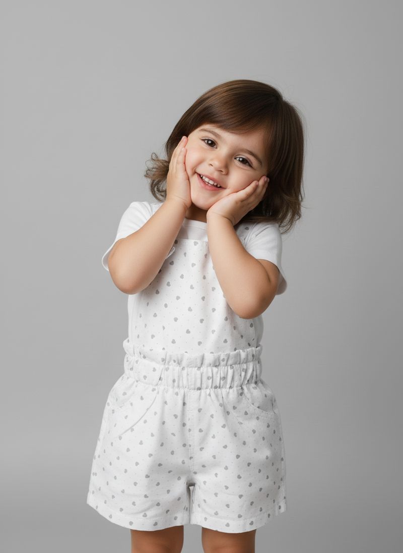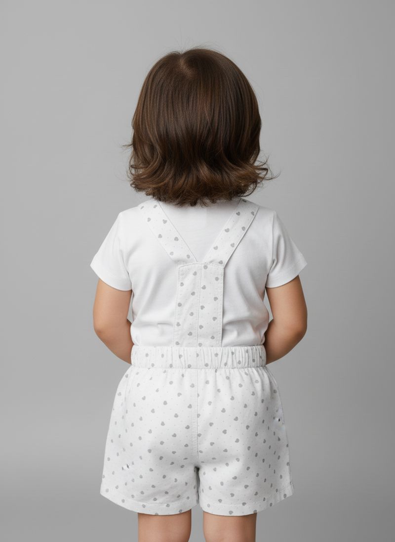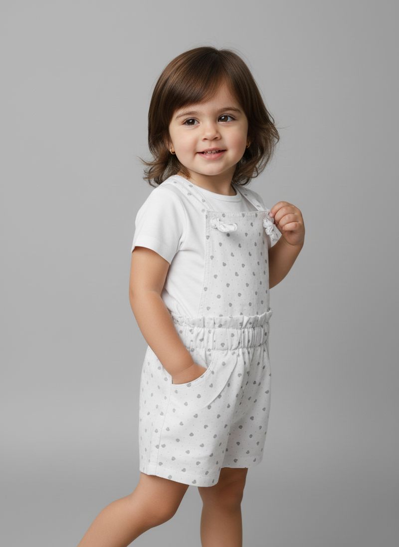 Alegria e conforto definem o Macaquinho Infantil Caedu! Em denim super leve, este lookinho traz uma blusa charmosa e um shorts jardineira com estampa de corações, puro encanto para sua pequena. Look Caedu, sinônimo de diversão fashion e liberdade para brincar!