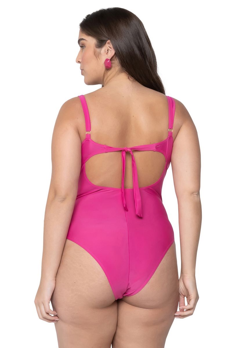 Maiô liso na cor pink, com decote cavado nas costas e amarração. Linda e super moderna, a peça ajusta-se delicadamente ao corpo. O modelo elegante proporciona um visual muito charmoso para os dias de verão na piscina ou praia.