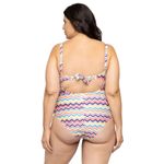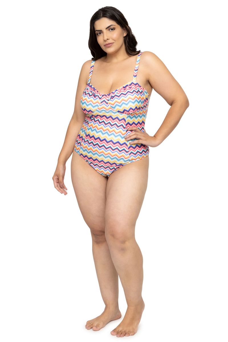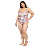 Maiô com estampa chevron, com decote cavado nas costas e amarração. Linda e super moderna, a peça ajusta-se delicadamente ao corpo. O modelo elegante proporciona um visual muito charmoso para os dias de verão na piscina ou praia. Modelo Plus Size
