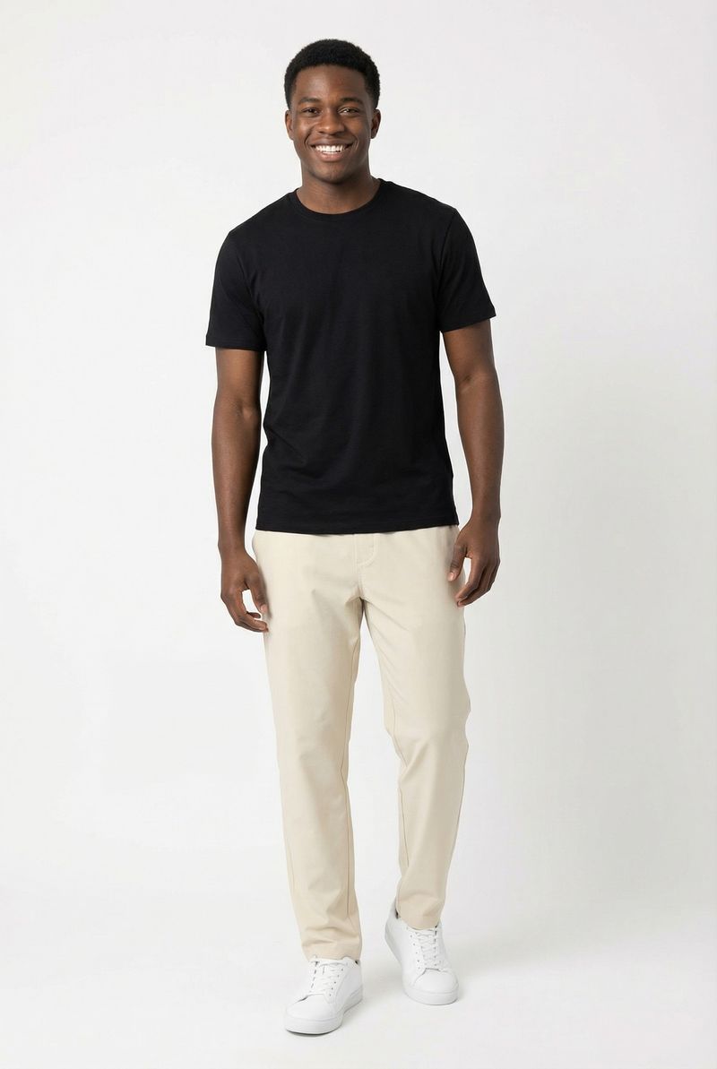 Combine sua bermuda bege claro com uma camiseta básica preta ou branca para um visual casual e moderno. Adicione um par de tênis brancos para um toque despojado. Para dias mais frescos, uma camisa jeans aberta ou uma jaqueta leve complementam o look com estilo, ideal para diversas ocasiões do dia a dia.