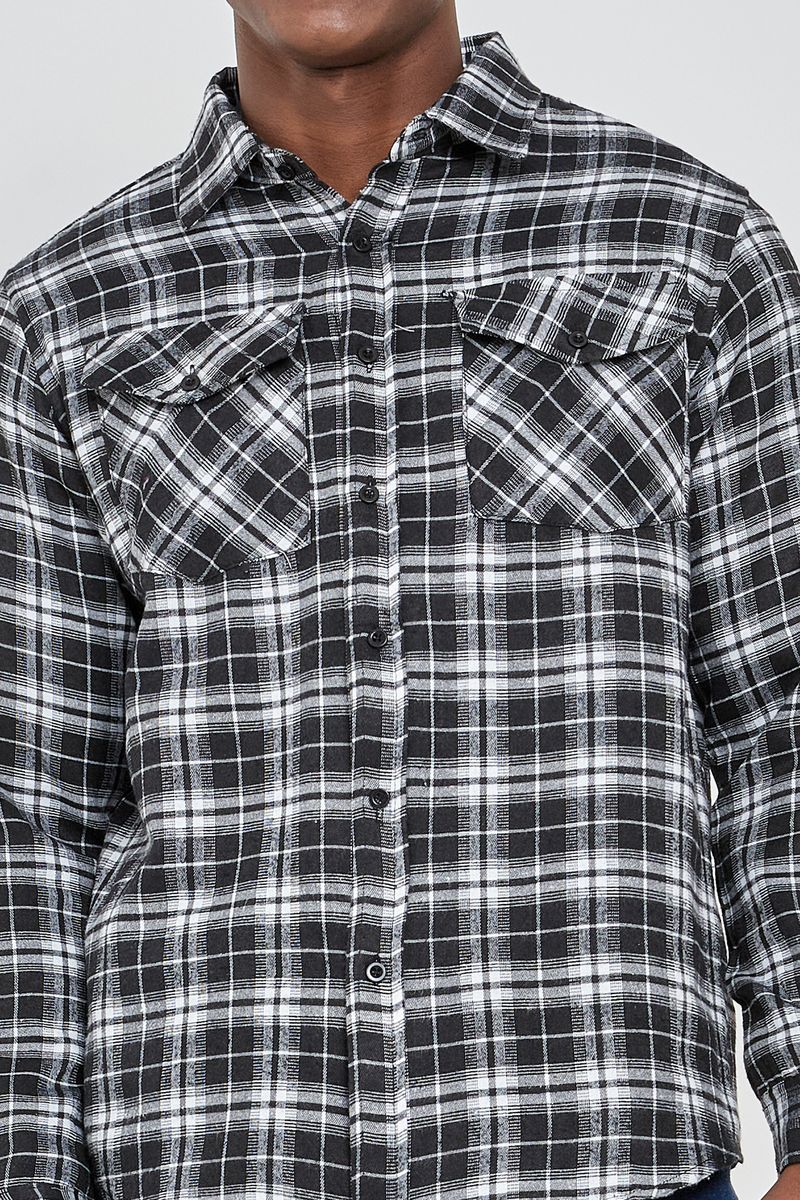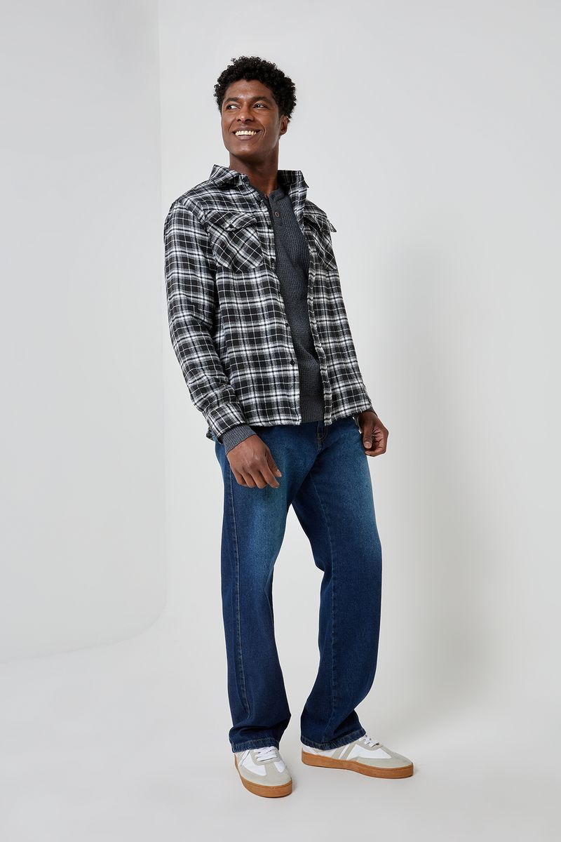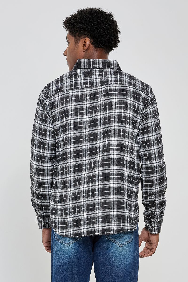 A Camisa Masculina Xadrez Flanela Bolso Preto Caedu oferece conforto e estilo. Em flanela macia, com estampa xadrez e bolso, é uma roupa versátil da Caedu para sua moda casual.