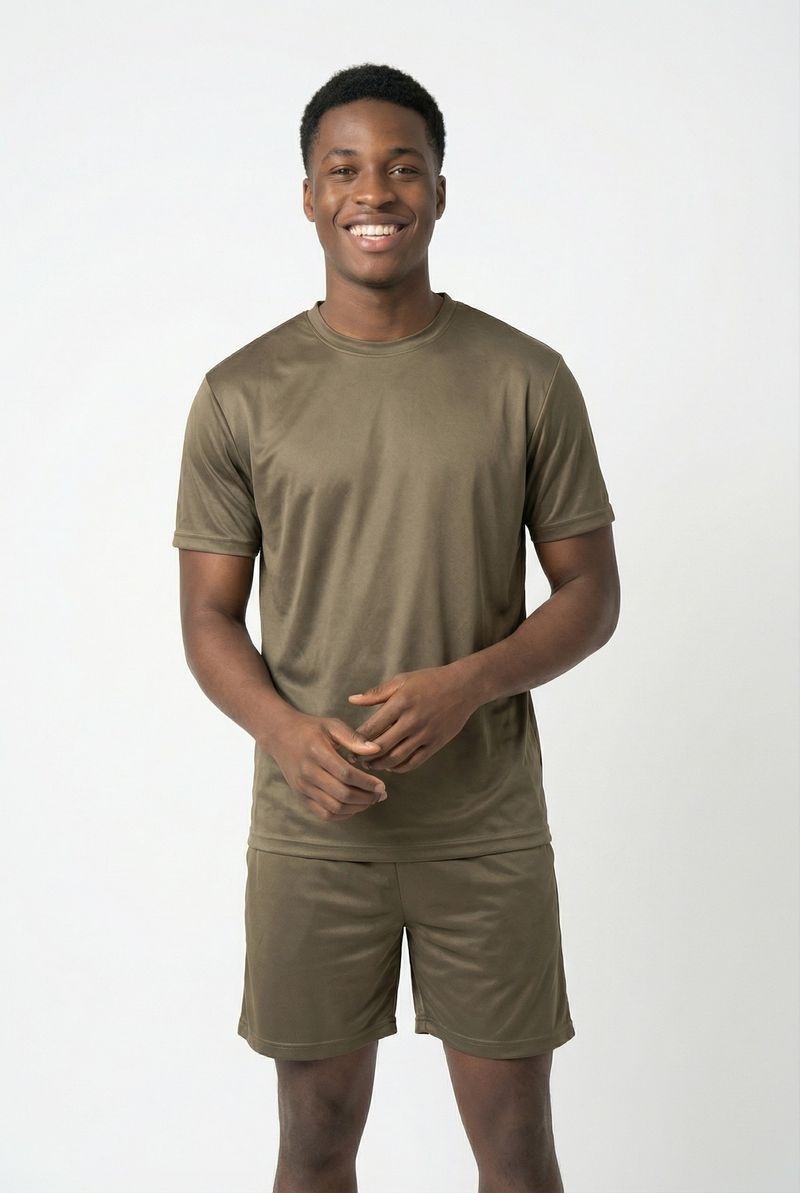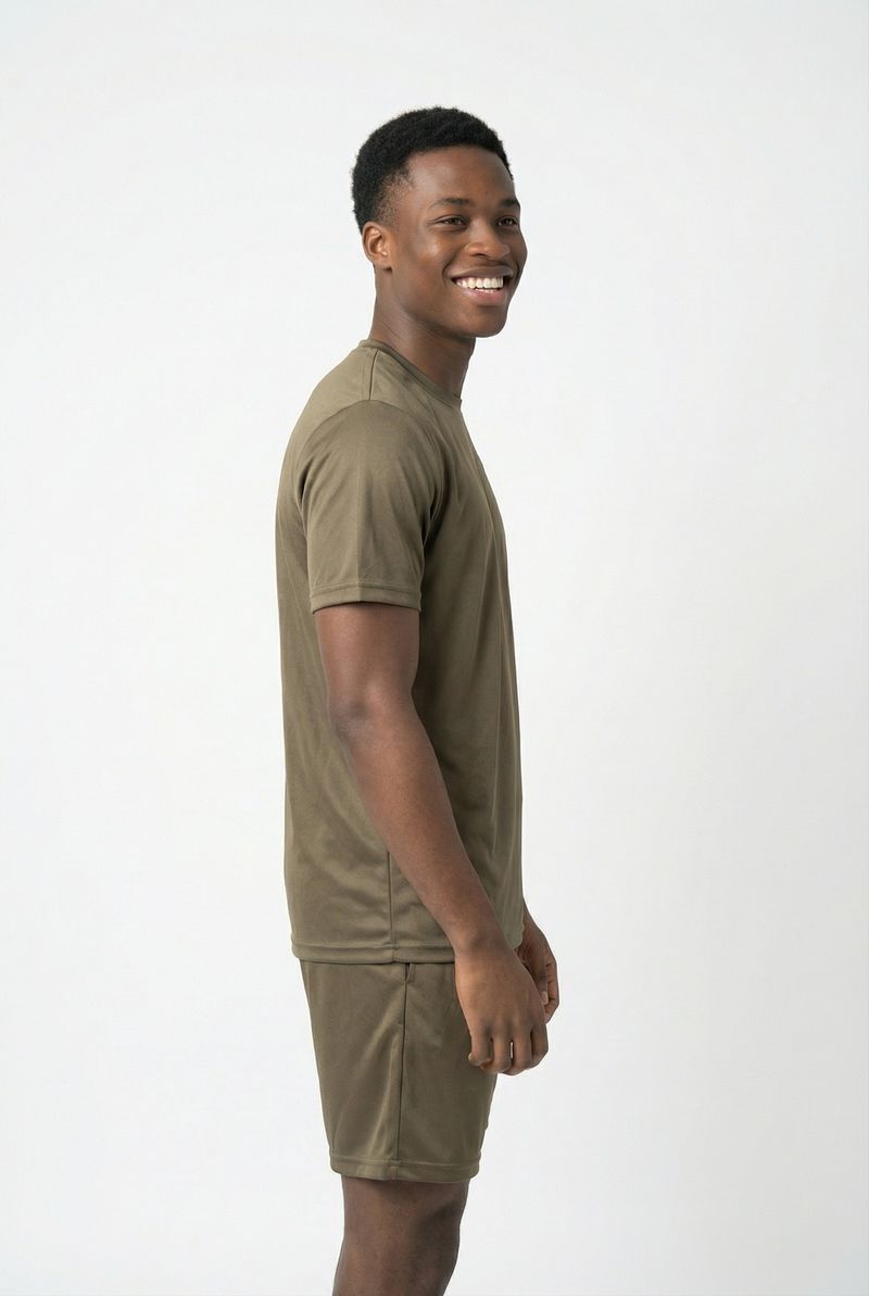 Eleve seu estilo com a Camiseta Masculina Performance Tech Verde Oliva Caedu. Confeccionada em Dry Fit com 98% poliéster e 2% elastano, oferece conforto e liberdade. Sua tonalidade verde, que remete ao pistache, garante um visual moderno e de alto nível na moda masculina. Perfeita para quem busca performance e elegância nas roupas Caedu.