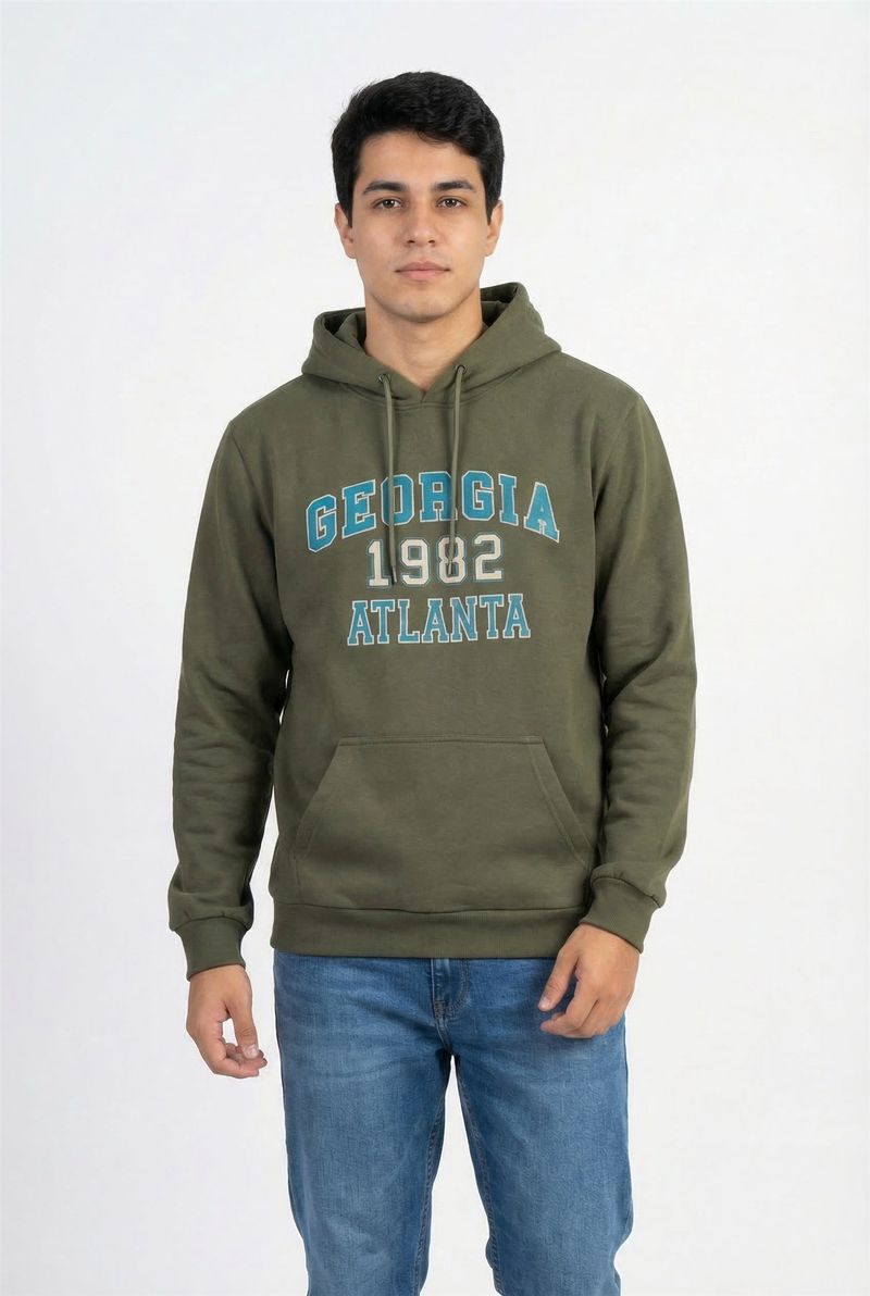 Eleve seu estilo com o Moletom Masculino Casual Verde Militar Caedu. Confeccionado em moletom com felpa 100% poliéster, oferece conforto e durabilidade. A cor verde militar, com um sutil tom pistache, traz um toque de modernidade, enquanto a estampa 'Georgia 1982 Atlanta' adiciona um charme urbano e nostálgico. Ideal para quem busca estilo e conforto em uma única peça.