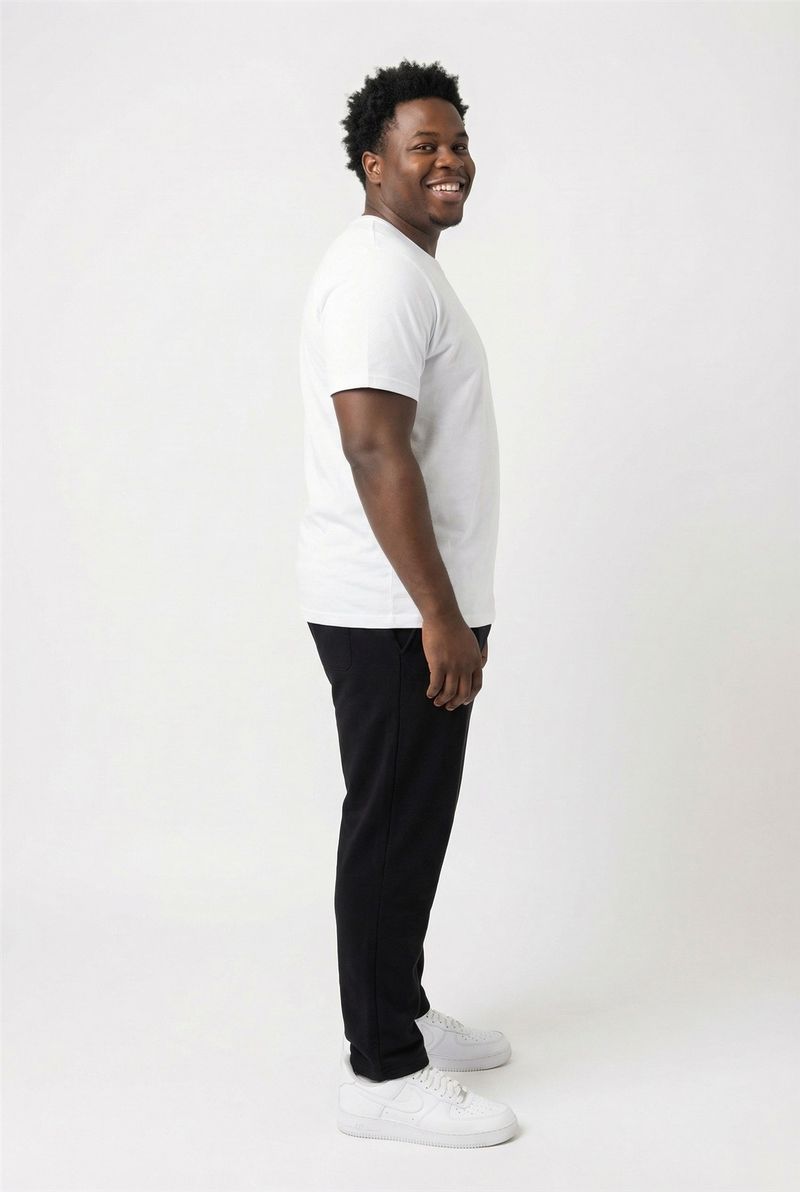 Combine sua Calça Jogger Preta com uma camiseta branca lisa para um look despojado. Adicione tênis brancos para um toque esportivo ou um moletom para dias mais frescos. Versatilidade para criar seu próprio estilo com roupas Caedu.