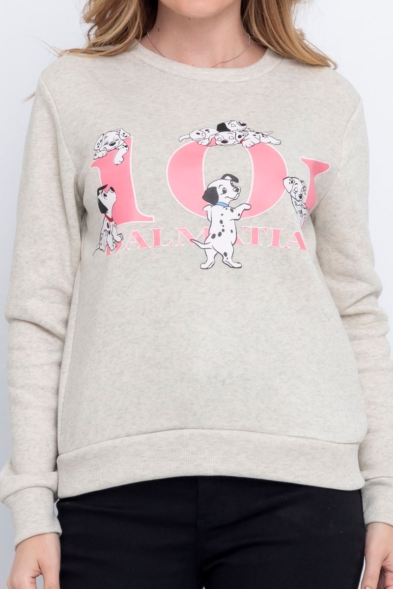 Blusão Feminino em Moletom com Estampa 101 Dálmatas Bege
