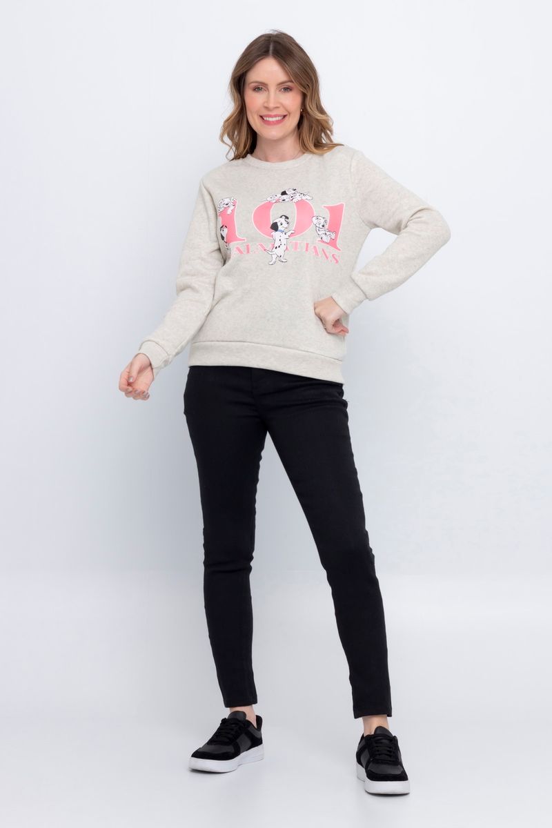 VestuárioOfertasFemininoNovidadesMoletonsBlusão Feminino em Moletom com Estampa 101 Dálmatas Bege
