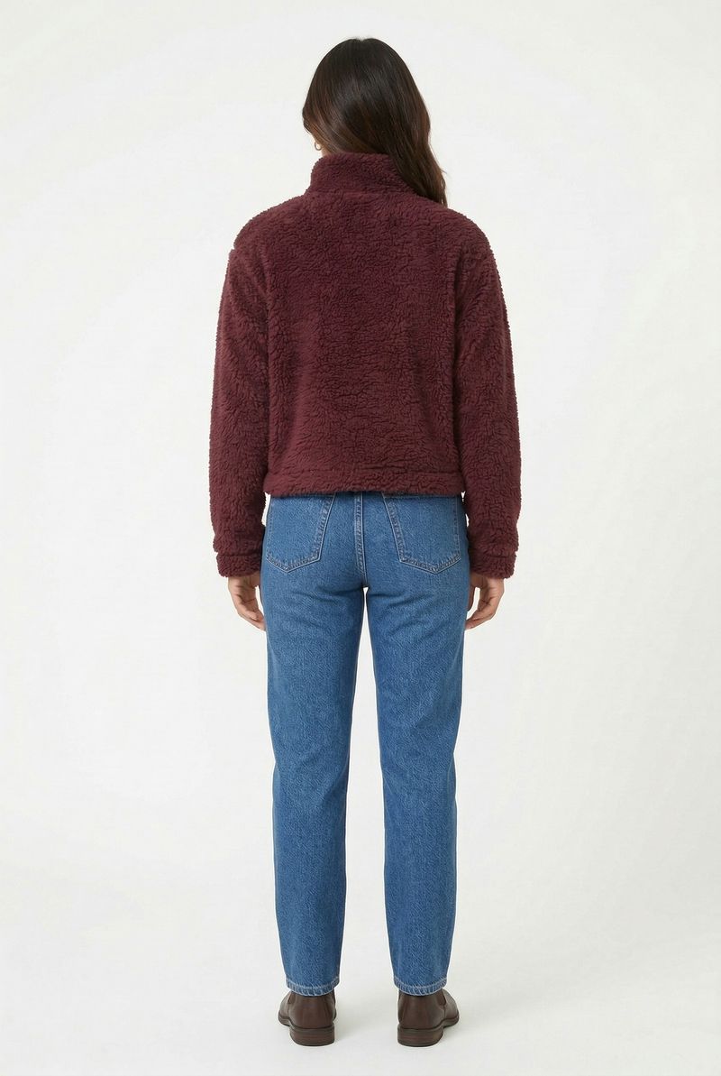 Sinta o abraço do conforto com o Moletom Feminino Sherpa Aconchegante Gola Alta Vinho Borgonha Caedu. Perfeito para envolver você em maciez, este moletom de poliéster puro destaca-se pela textura felpuda e pela cor vinho, que se alinha às últimas tendências da moda. Uma peça essencial para um visual elegante e acolhedor.
