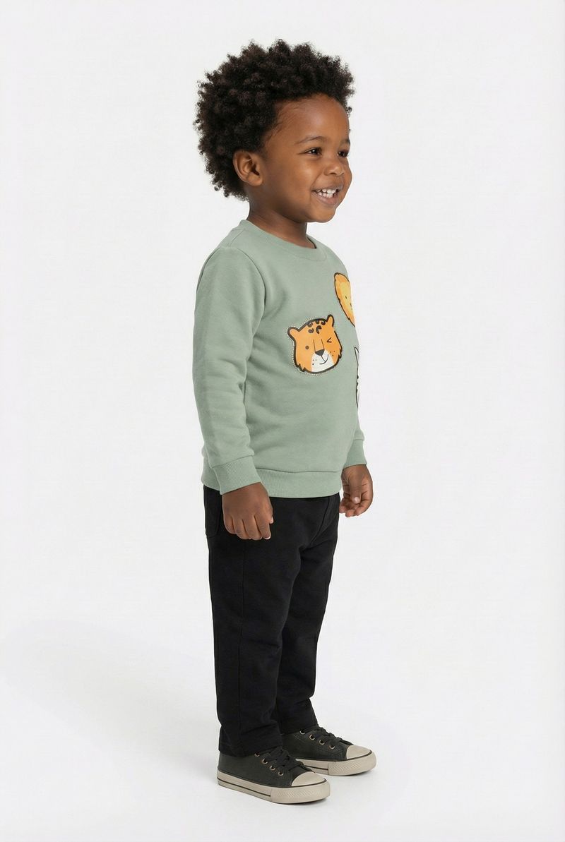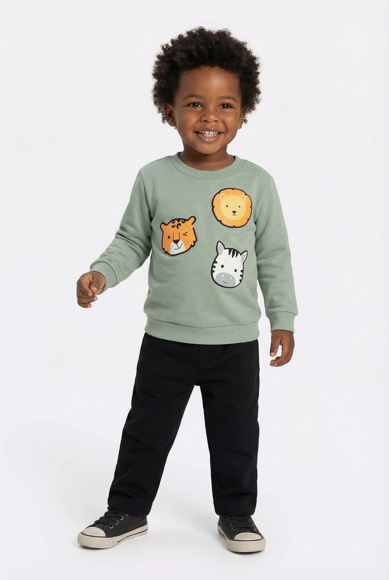 Desperte a alegria com o Moletom Infantil Caedu Bichinhos Safari, a peça ideal para conforto e estilo. Feito em 100% algodão com moletom com felpa, oferece maciez. O verde sálvia, que remete ao pistache, eleva o visual com um alto nível de moda, e os bichinhos safari em puff adicionam um toque divertido à roupa infantil.