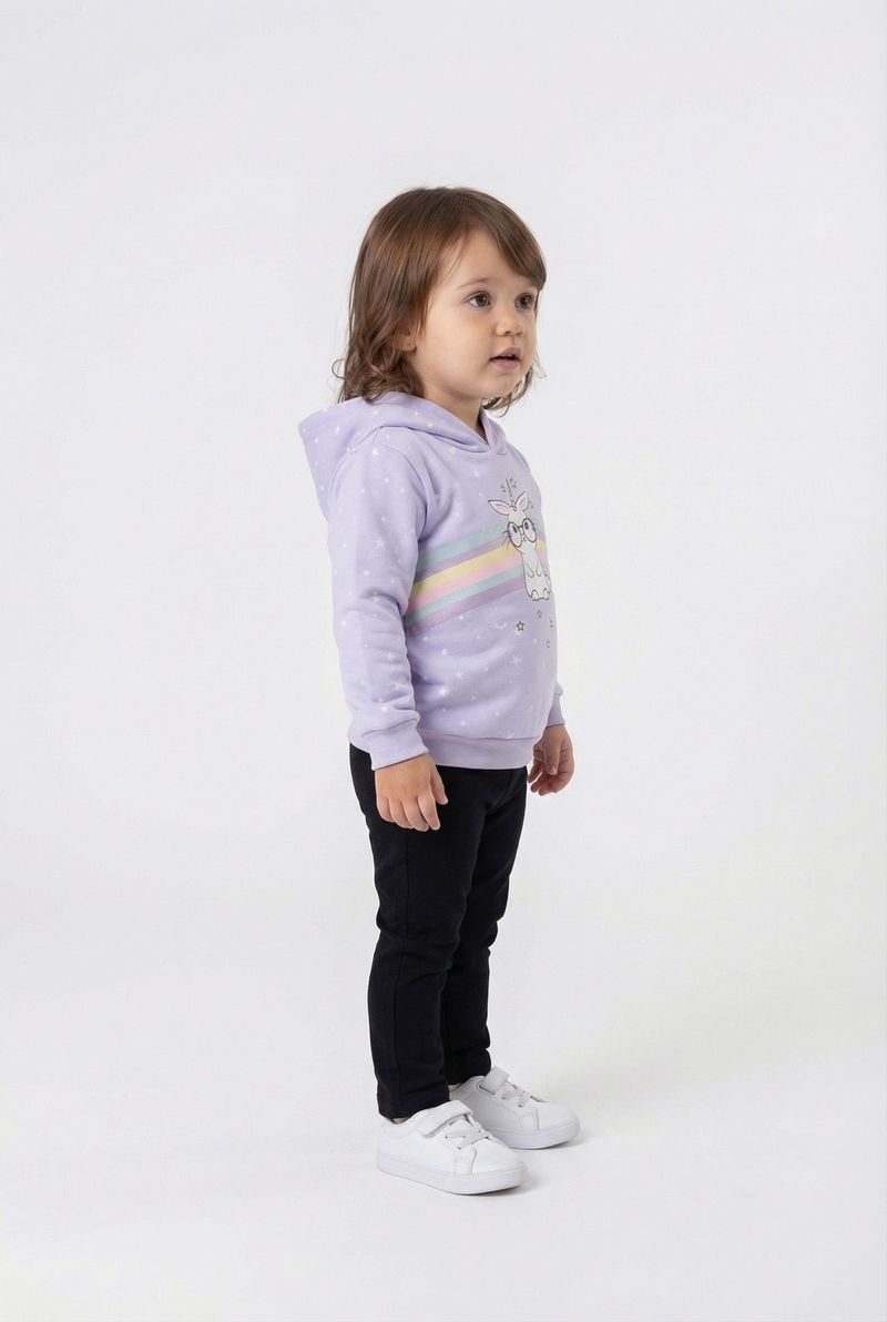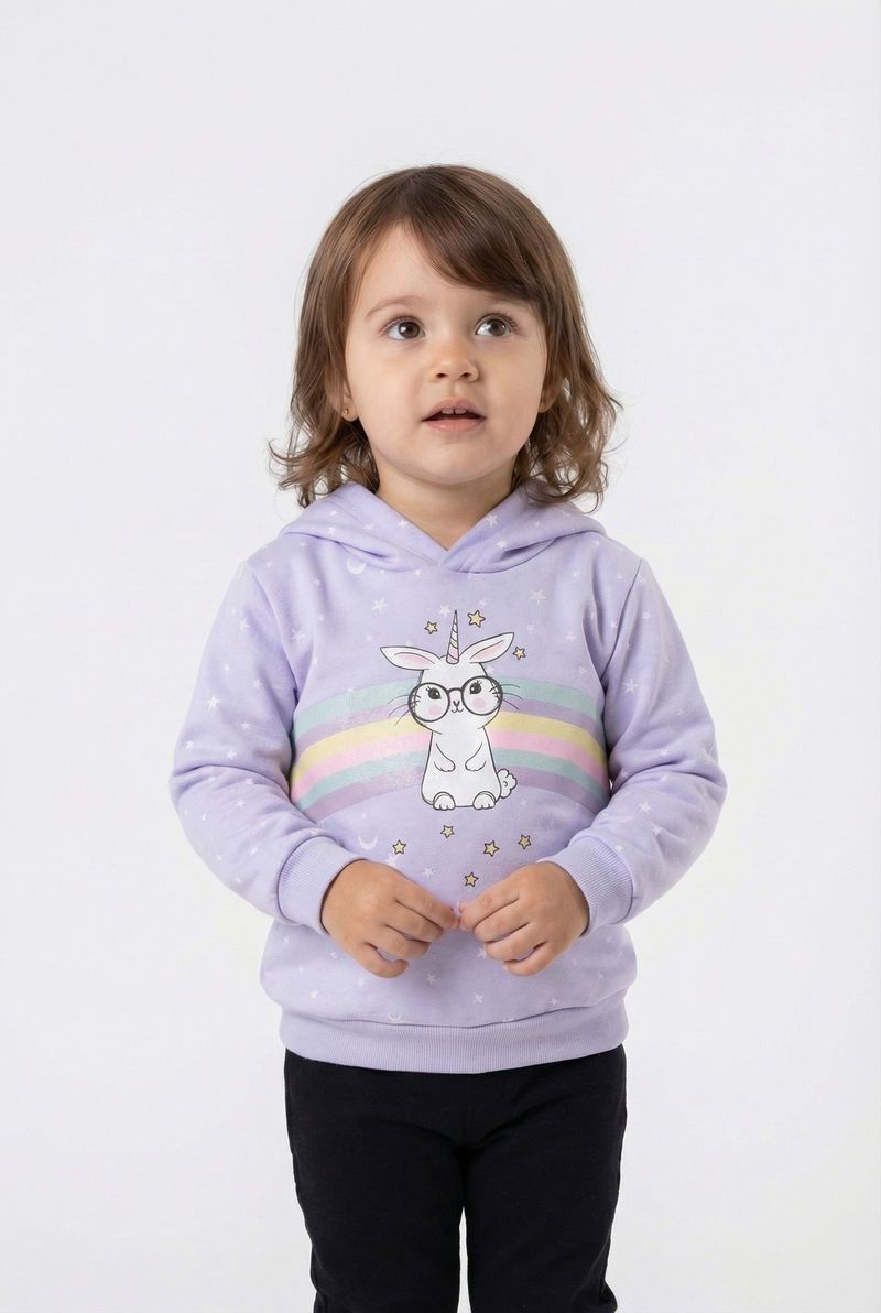 Descubra o Moletom Infantil Lilás Estrelado com Capuz e Estampa de Coelho Unicórnio Caedu, perfeito para um visual divertido e confortável. Feito em 100% algodão com felpa, oferece maciez e aconchego. Parte da nova coleção de outono inverno, é a roupa ideal para sua pequena brilhar com estilo.