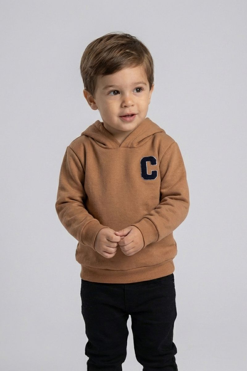 Prepare seu pequeno para aventuras com o Moletom Infantil Caramelo Caedu. Confeccionado em moletom com felpa, oferece máximo conforto e aconchego. Seu design moderno com capuz e o exclusivo patch College 'C' adiciona um toque de estilo, ideal para a moda infantil.