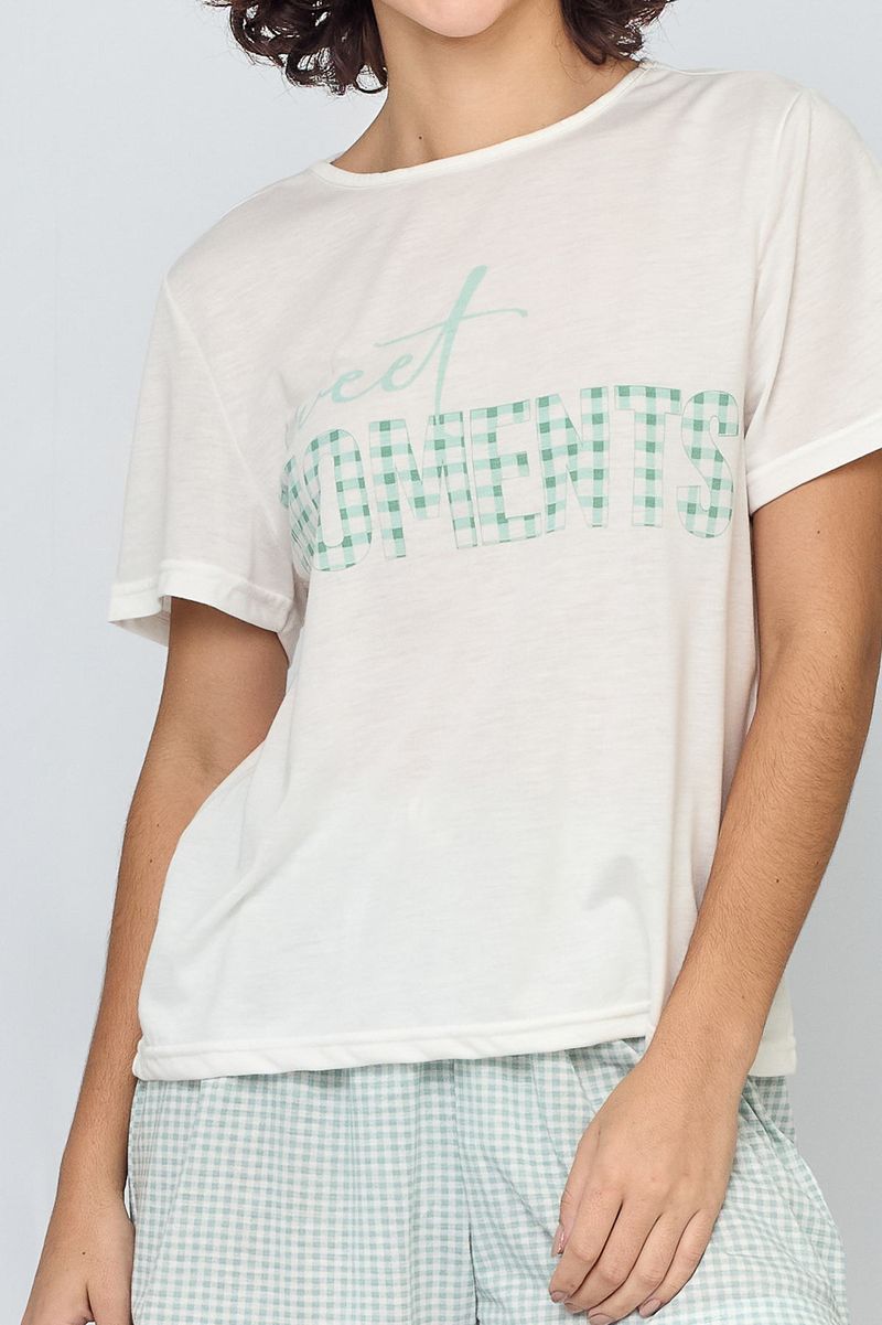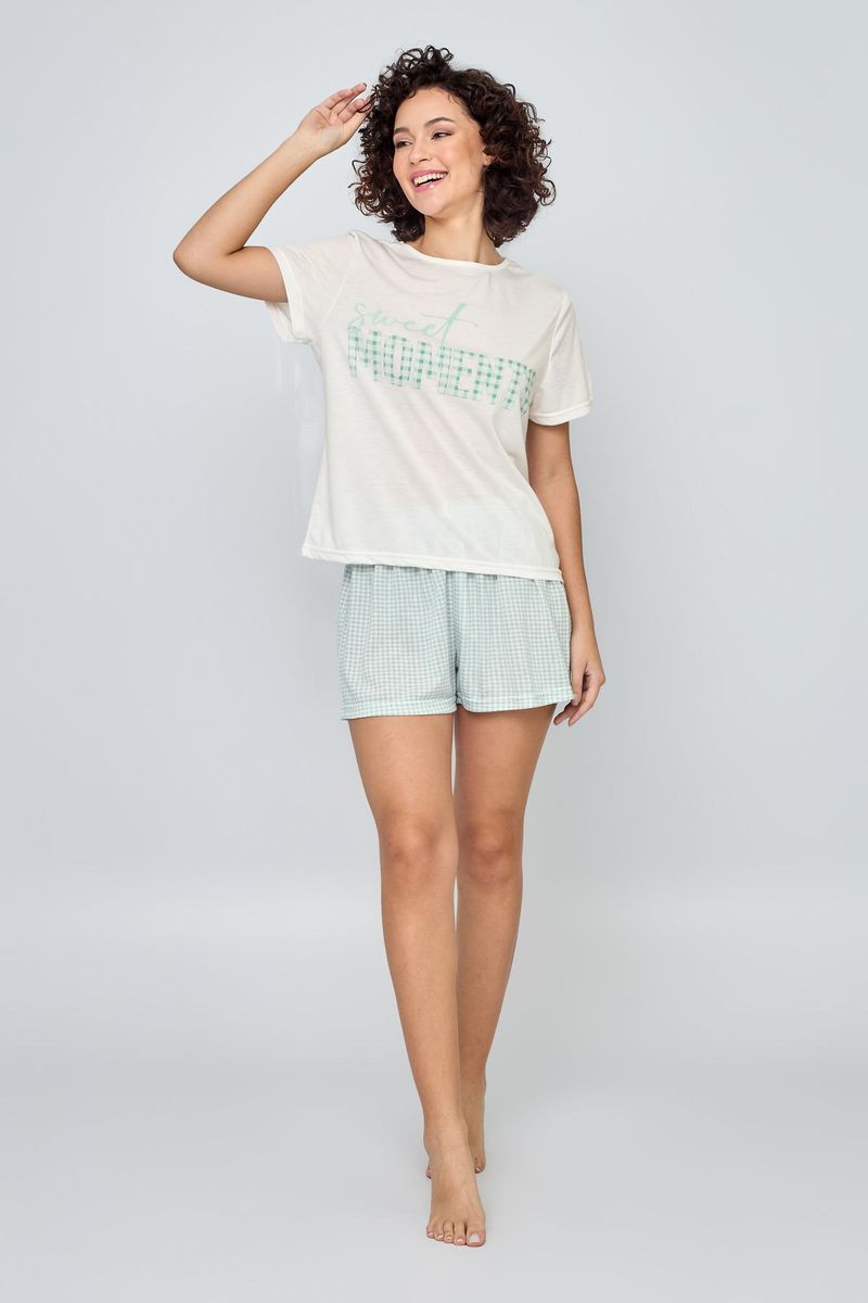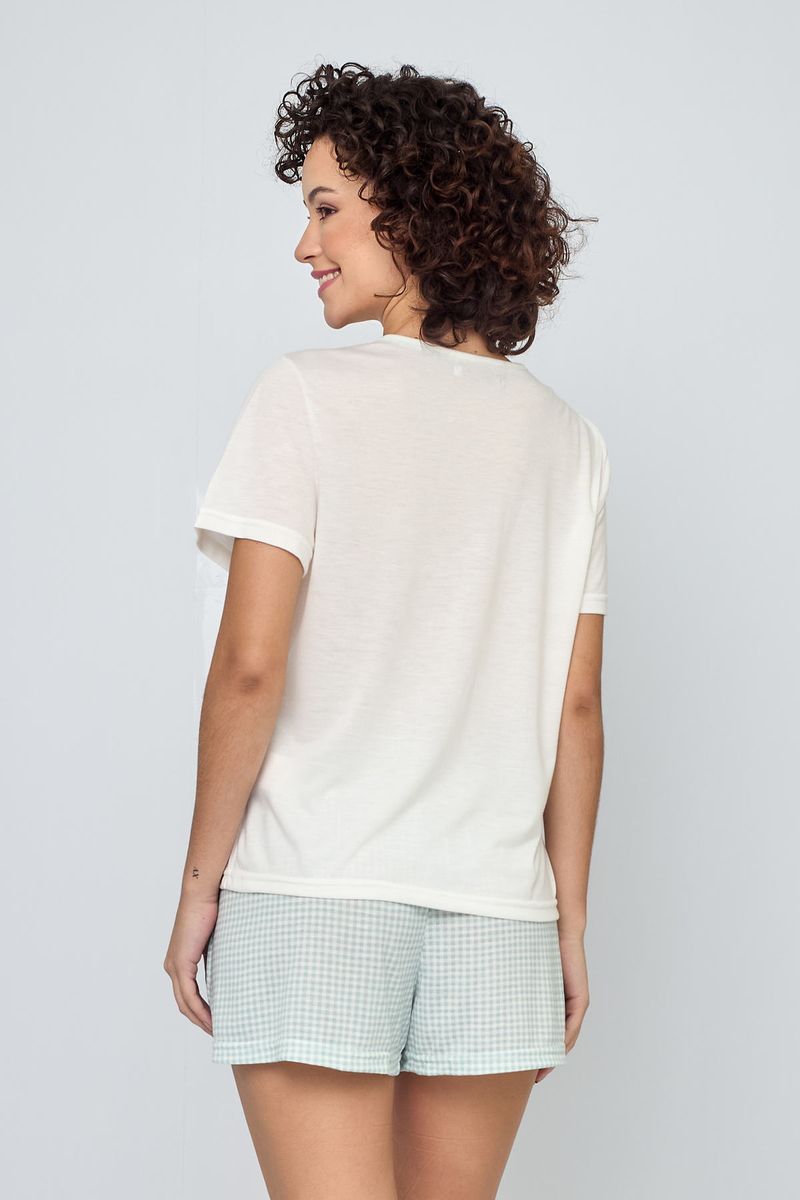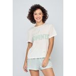 Pijama feminino off white com estampa, prático e confortável para o dia a dia.