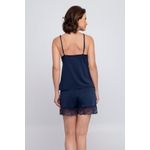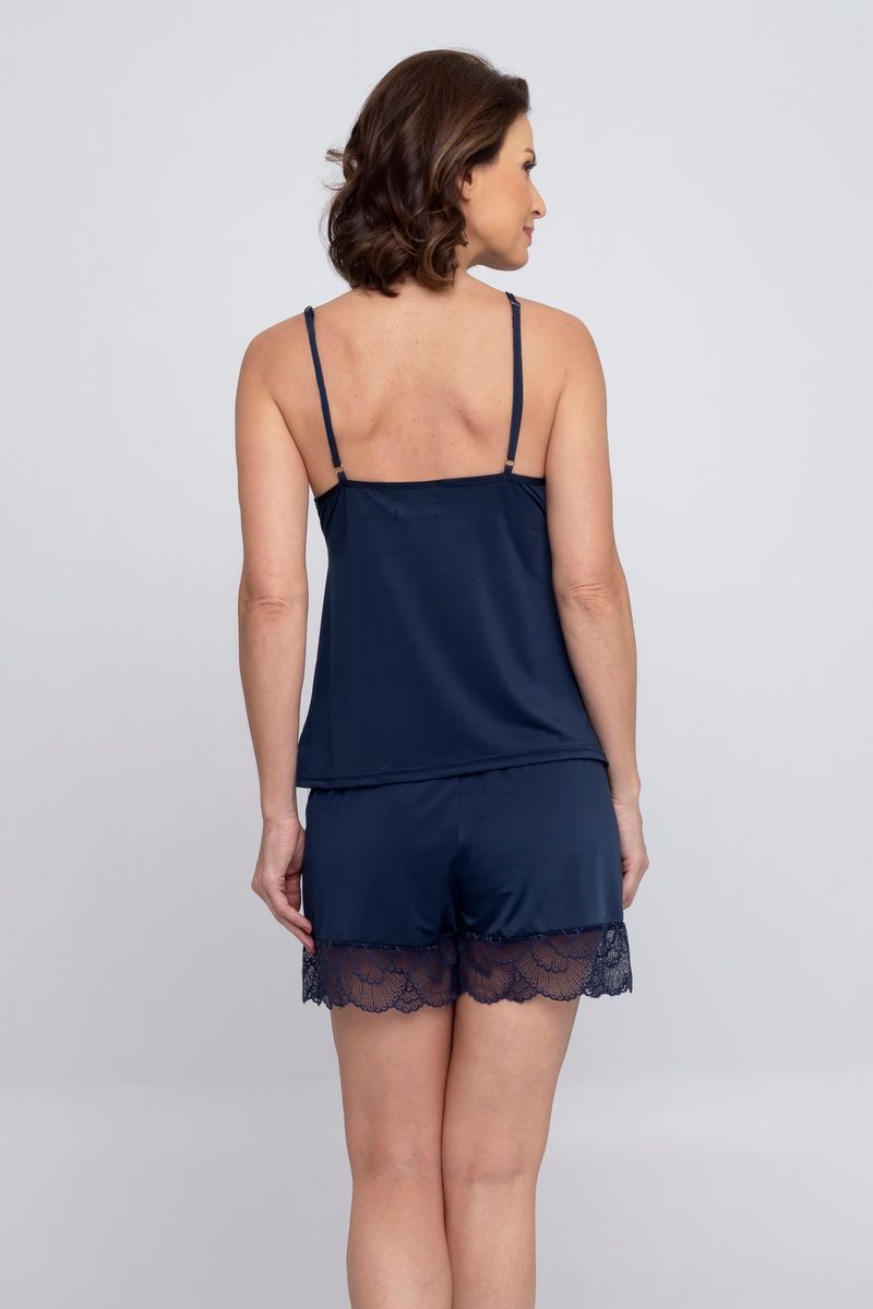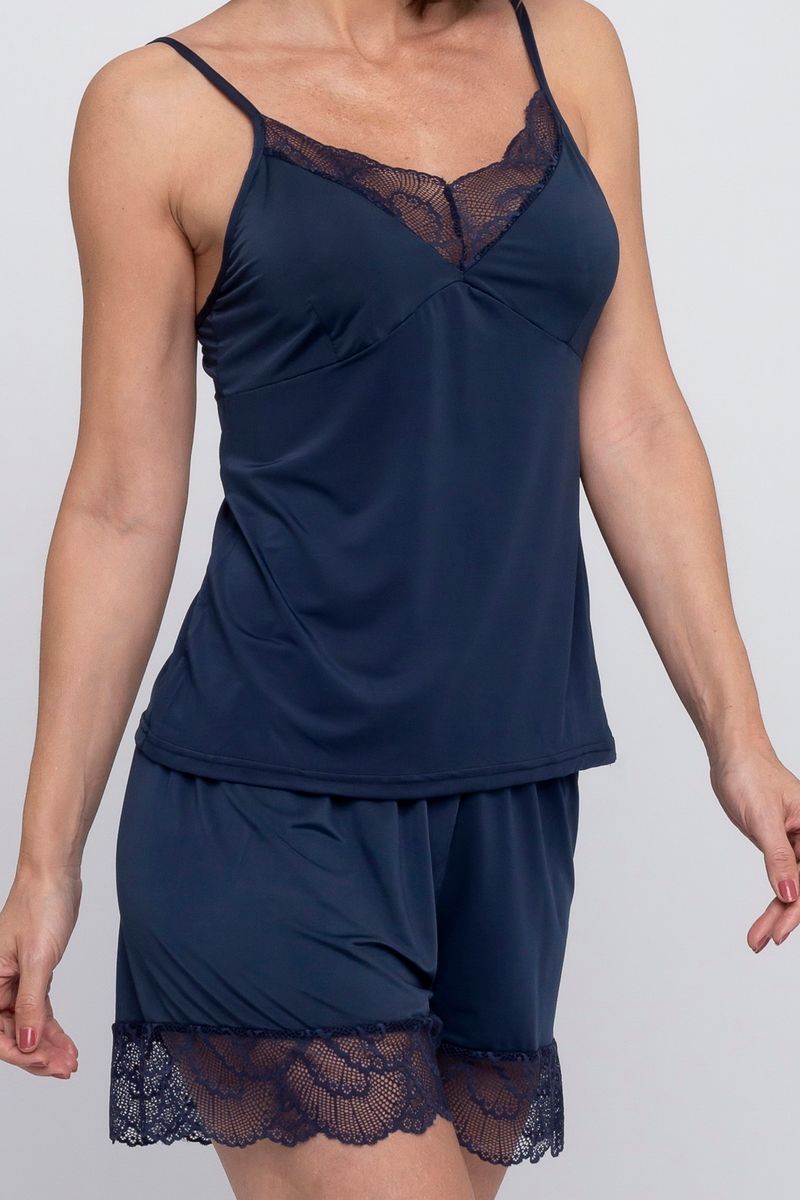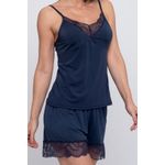 Pijama Feminino com Alça Regulável Renda Azul Marinho