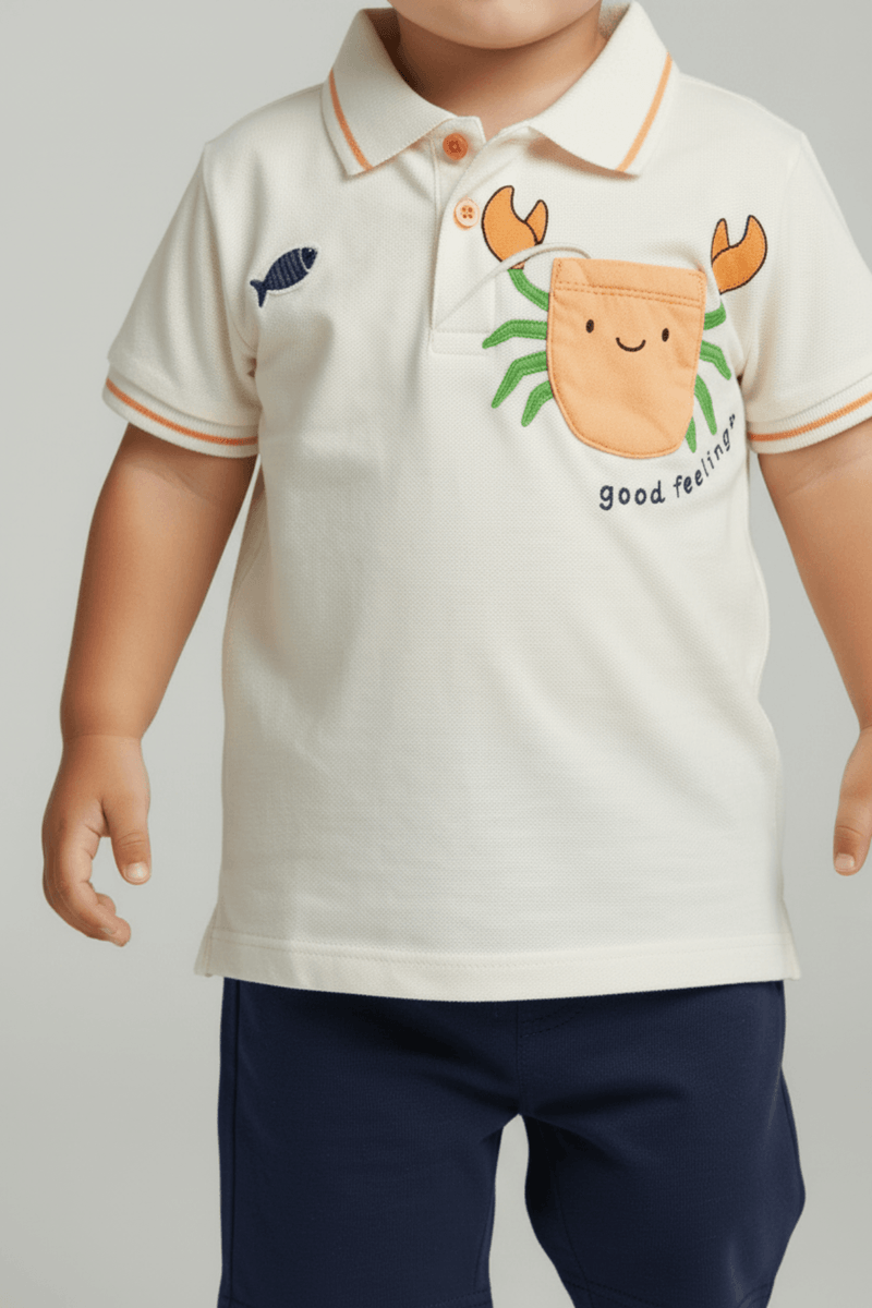 A Polo Infantil Off White com Bolso Caranguejo da Infantil oferece conforto e estilo para os pequenos exploradores. Confeccionada em meia malha, garante liberdade. Seu design com caranguejo e cor off white traz um visual moderno e divertido, ideal para a moda infantil da Lojas Caedu com preço bom.